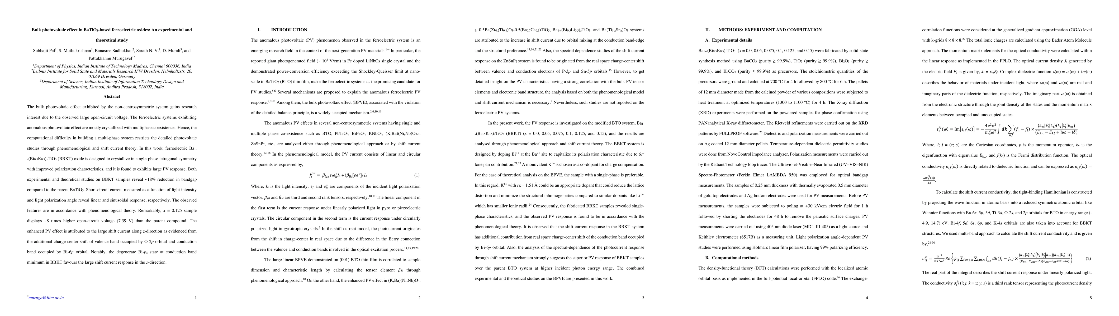 This paper investigates the bulk photovoltaic effect in single-phase Ba$_{1- x}$(Bi$_{0.5}$K$_{0.5}$)$_x$TiO$_3$ (BBKT) oxides, revealing a significant reduction in bandgap and enhanced photovoltaic response compared to BaTiO$_3$. The study finds an 8-fold increase in open-circuit voltage for the x = 0.125 sample, attributed to large shift current due to the Bi-6p orbital contribution.
