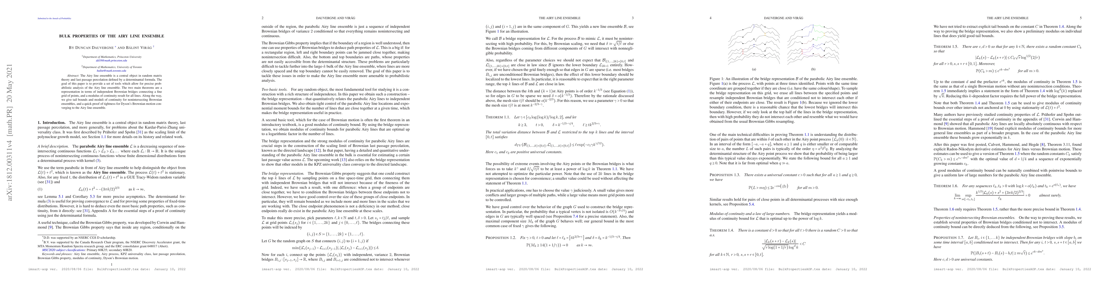This paper develops tools for analyzing the Airy line ensemble in random matrix theory, presenting two main theorems: a representation via independent Brownian bridges and a modulus of continuity result, along with tail bounds and moduli for nonintersecting Brownian ensembles.