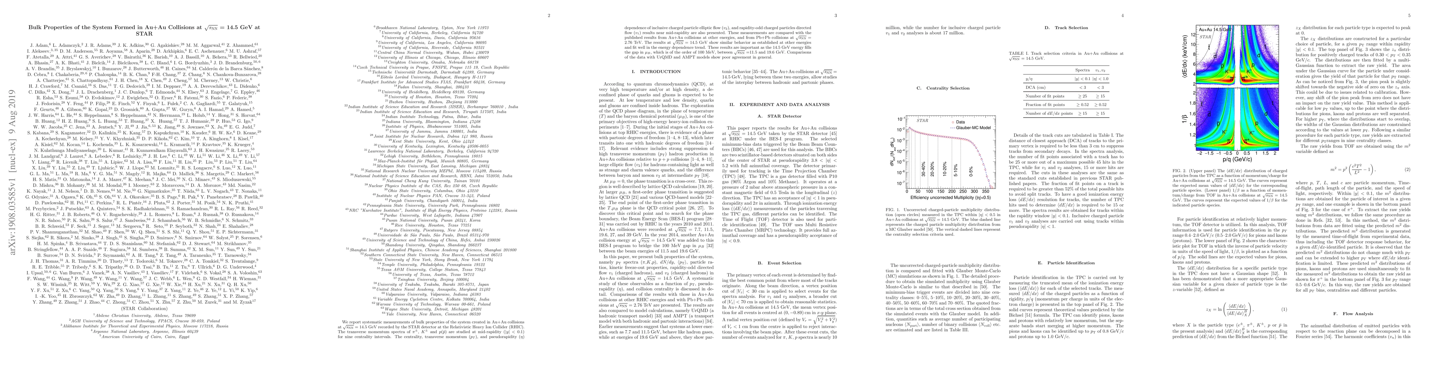 We report systematic measurements of bulk properties of the system created in Au+Au collisions at $\sqrt{s_{\mathrm{NN}}}$ = 14.5 GeV recorded by the STAR detector at the Relativistic Heavy Ion Collider (RHIC).The transverse momentum spectra of $\pi^{\pm}$, $K^{\pm}$ and $p(\bar{p})$ are studied at mid-rapidity ($|y| < 0.1$) for nine centrality intervals. The centrality, transverse momentum ($p_T$),and pseudorapidity ($\eta$) dependence of inclusive charged particle elliptic flow ($v_2$), and rapidity-odd charged particles directed flow ($v_{1}$) results near mid-rapidity are also presented. These measurements are compared with the published results from Au+Au collisions at other energies, and from Pb+Pb collisions at $\sqrt{s_{\mathrm{NN}}}$ = 2.76 TeV. The results at $\sqrt{s_{\mathrm{NN}}}$ = 14.5 GeV show similar behavior as established at other energies and fit well in the energy dependence trend. These results are important as the 14.5 GeV energy fills the gap in $\mu_B$, which is of the order of 100 MeV,between $\sqrt{s_{\mathrm{NN}}}$ =11.5 and 19.6 GeV. Comparisons of the data with UrQMD and AMPT models show poor agreement in general.
