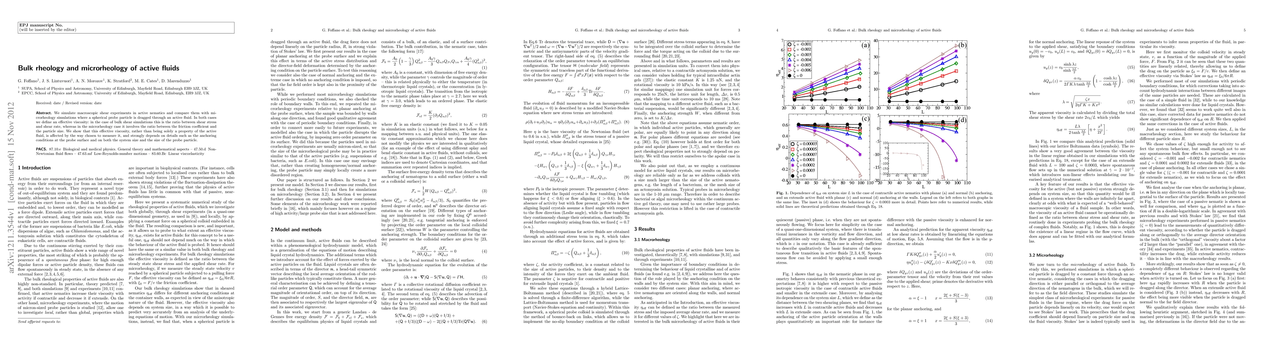 We simulate macroscopic shear experiments in active nematics and compare them with microrheology simulations where a spherical probe particle is dragged through an active fluid. In both cases we define an effective viscosity: in the case of bulk shear simulations this is the ratio between shear stress and shear rate, whereas in the microrheology case it involves the ratio between the friction coefficient and the particle size. We show that this effective viscosity, rather than being solely a property of the active fluid, is affected by the way chosen to measure it, and strongly depends on details such as the anchoring conditions at the probe surface and on both the system size and the size of the probe particle.