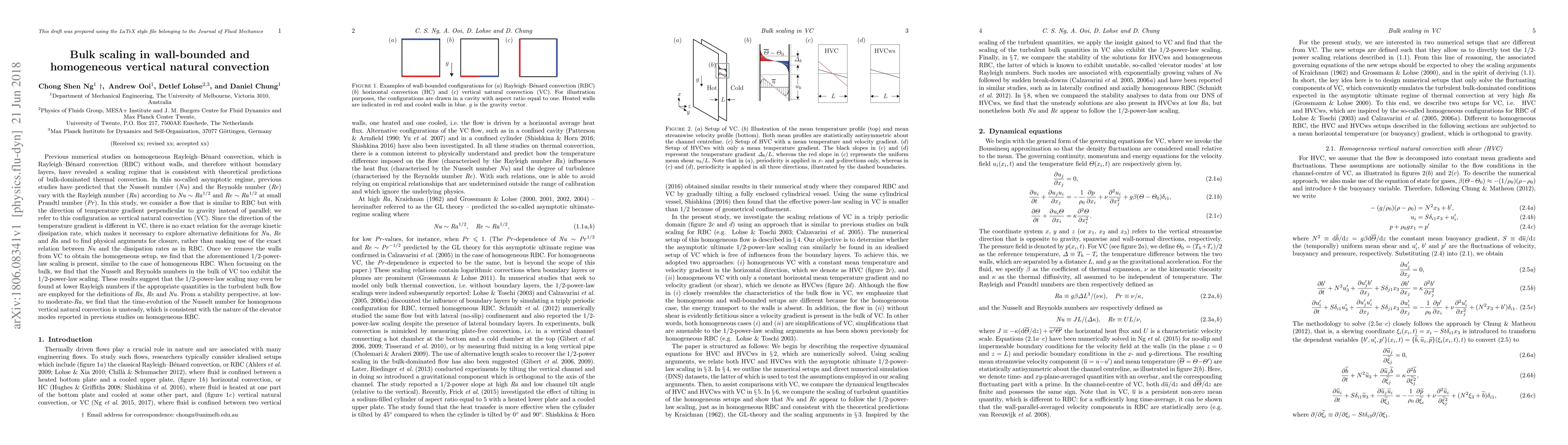 Previous numerical studies on homogeneous Rayleigh-B\'enard convection, which is Rayleigh-B\'enard convection (RBC) without walls, and therefore without boundary layers, have revealed a scaling regime that is consistent with theoretical predictions of bulk-dominated thermal convection. In this so-called asymptotic regime, previous studies have predicted that the Nusselt number ($Nu$) and the Reynolds number ($Re$) vary with the Rayleigh number ($Ra$) according to $Nu\sim Ra^{1/2}$ and $Re\sim Ra^{1/2}$ at small Prandtl number ($Pr$). In this study, we consider a flow that is similar to RBC but with the direction of temperature gradient perpendicular to gravity instead of parallel; we refer to this configuration as vertical natural convection (VC). Since the direction of the temperature gradient is different in VC, there is no exact relation for the average kinetic dissipation rate, which makes it necessary to explore alternative definitions for $Nu$, $Re$ and $Ra$ and to find physical arguments for closure, rather than making use of the exact relation between $Nu$ and the dissipation rates as in RBC. Once we remove the walls from VC to obtain the homogeneous setup, we find that the aforementioned $1/2$-power-law scaling is present, similar to the case of homogeneous RBC. When focussing on the bulk, we find that the Nusselt and Reynolds numbers in the bulk of VC too exhibit the $1/2$-power-law scaling. These results suggest that the $1/2$-power-law scaling may even be found at lower Rayleigh numbers if the appropriate quantities in the turbulent bulk flow are employed for the definitions of $Ra$, $Re$ and $Nu$. From a stability perspective, at low- to moderate-$Ra$, we find that the time-evolution of the Nusselt number for homogenous vertical natural convection is unsteady, which is consistent with the nature of the elevator modes reported in previous studies on homogeneous RBC.