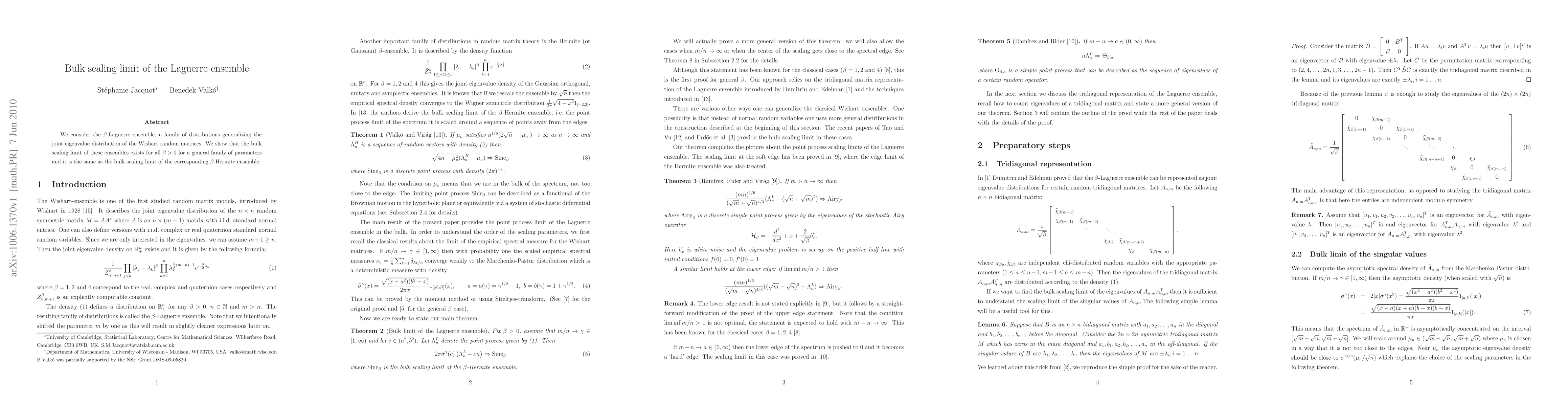 We consider the beta-Laguerre ensemble, a family of distributions generalizing the joint eigenvalue distribution of the Wishart random matrices. We show that the bulk scaling limit of these ensembles exists for all beta>0 for a general family of parameters and it is the same as the bulk scaling limit of the corresponding beta-Hermite ensemble.