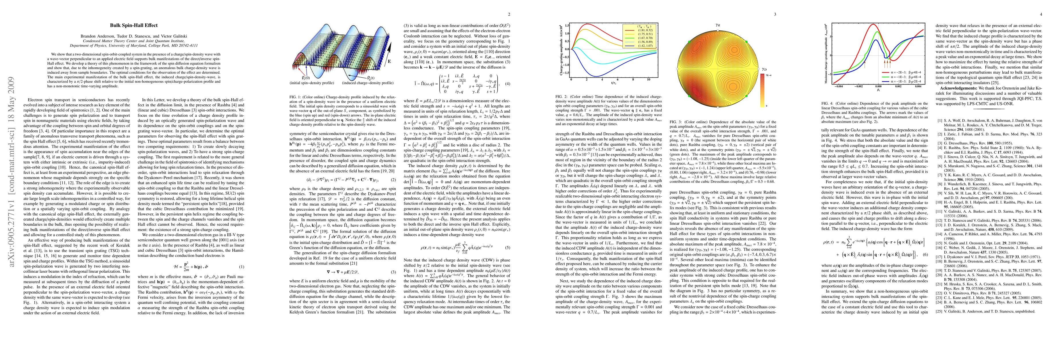 We show that a two-dimensional spin-orbit-coupled system in the presence of a charge/spin-density wave with a wave-vector perpendicular to an applied electric field supports bulk manifestations of the direct/inverse spin-Hall effect. We develop a theory of this phenomenon in the framework of the spin diffusion equation formalism and show that, due to the inhomogeneity created by a spin-grating, an anomalous bulk charge-density wave is induced away from sample boundaries. The optimal conditions for the observation of the effect are determined. The main experimental manifestation of the bulk spin-Hall effect, the induced charge/spin-density-wave, is characterized by a pi/2-phase shift relative to the initial non-homogeneous spin/charge-polarization profile and has a non-monotonic time-varying amplitude.