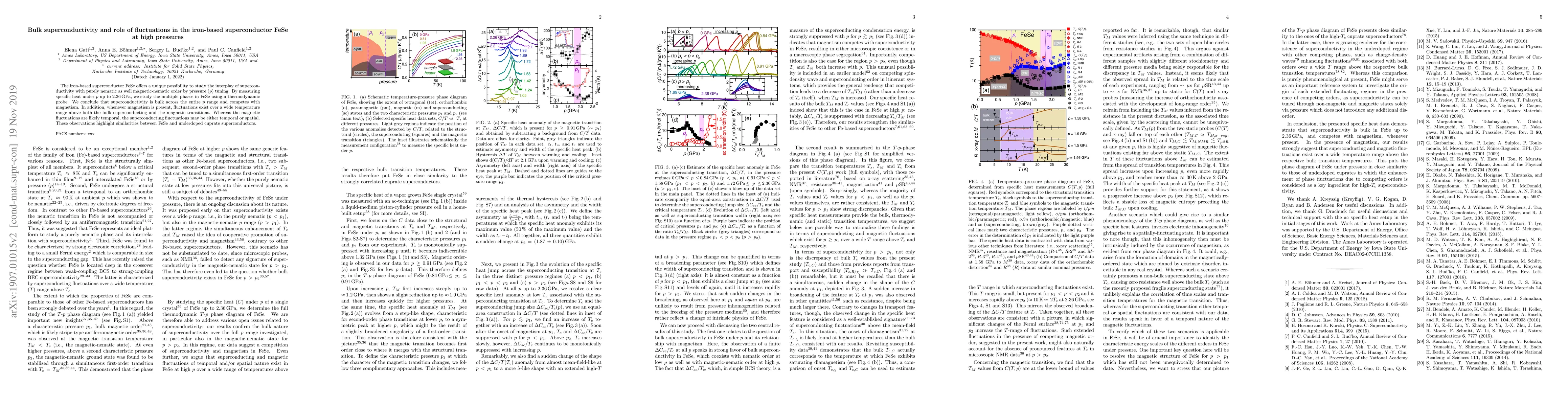This study investigates the bulk superconductivity and the influence of fluctuations in the iron-based superconductor FeSe under high pressures. The research concludes that superconductivity persists across all pressures and competes with magnetic order, while fluctuations of superconductivity and magnetism coexist above their respective transition temperatures, drawing parallels to underdoped cuprate superconductors.