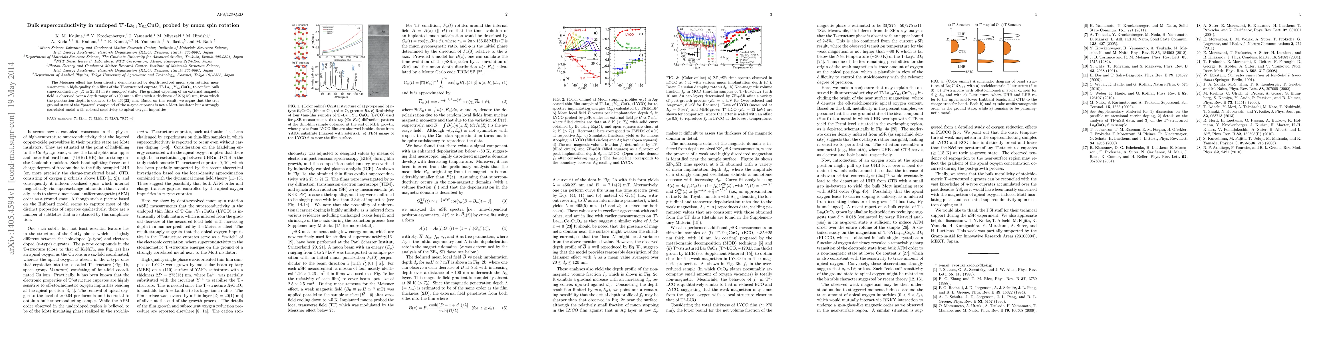 Researchers have directly demonstrated bulk superconductivity in undoped T'-La$_{1.9}$Y$_{0.1}$CuO$_4$ using muon spin rotation measurements, confirming a true ground state of strongly correlated metal with sensitivity to oxygen impurities.