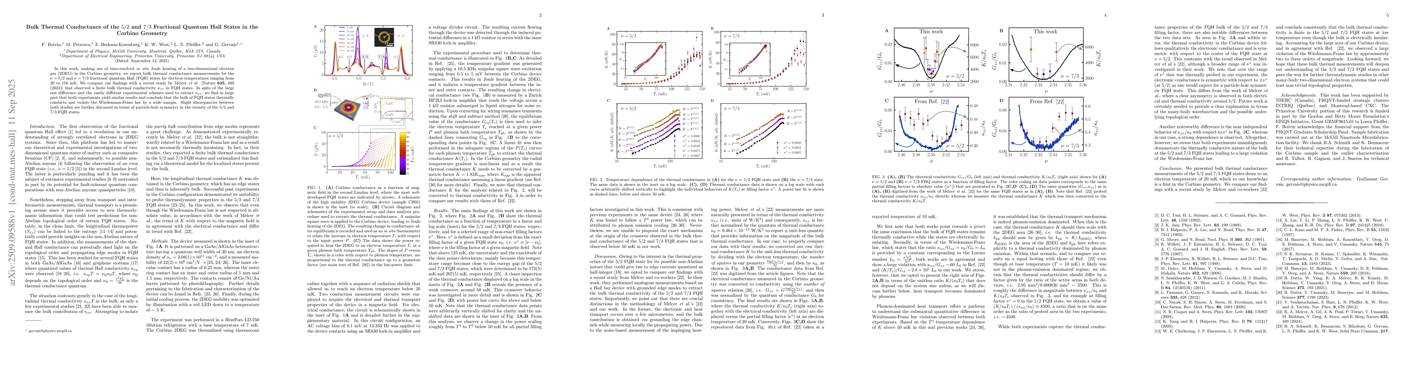 In this work, making use of time-resolved in situ Joule heating of a two-dimensional electron gas (2DEG) in the Corbino geometry, we report bulk thermal conductance measurements for the {\nu} = 5/2 and {\nu} = 7/3 fractional quantum Hall (FQH) states for electron temperatures ranging from 20 to 150 mK. We compare our findings with a recent study by Melcer et al. [Nature 625, 489 (2024)] that observed a finite bulk thermal conductivity \k{appa}xx in FQH states. In spite of the large size difference and the vastly different experimental schemes used to extract \k{appa}xx, we find in large part that both experiments yield similar results and conclude that the bulk of FQH states thermally conducts and violate the Wiedemann-Franz law by a wide margin. Slight discrepancies between both studies are further discussed in terms of particle-hole symmetry in the vicinity of the 5/2 and 7/3 FQH states.
