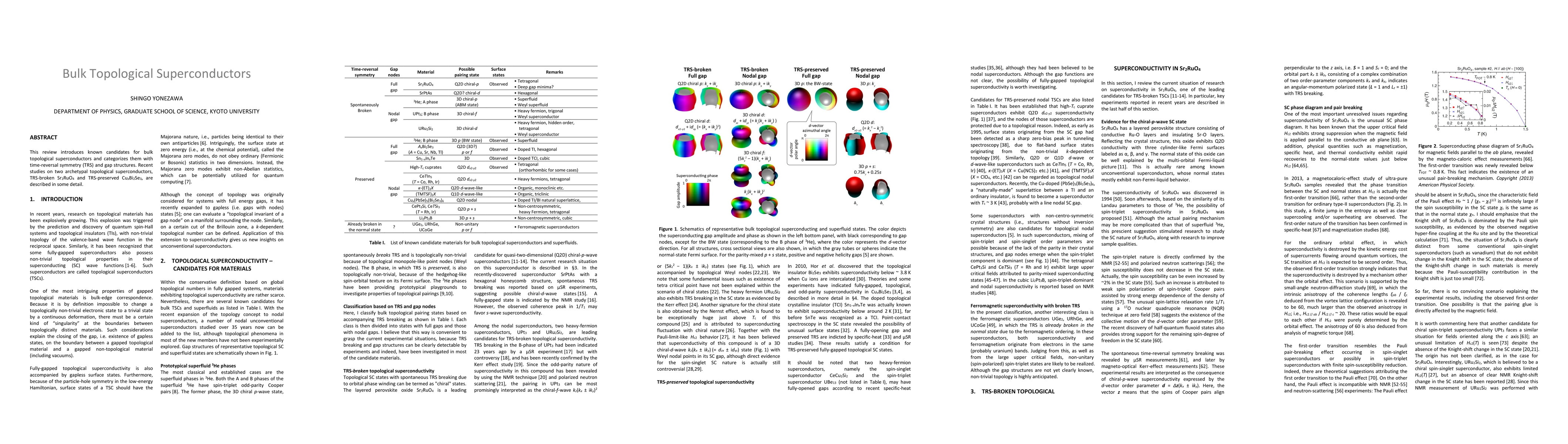 This review explores known bulk topological superconductors with time-reversal symmetry and gap structures, highlighting key findings from Sr2RuO4 and CuxBi2Se3.