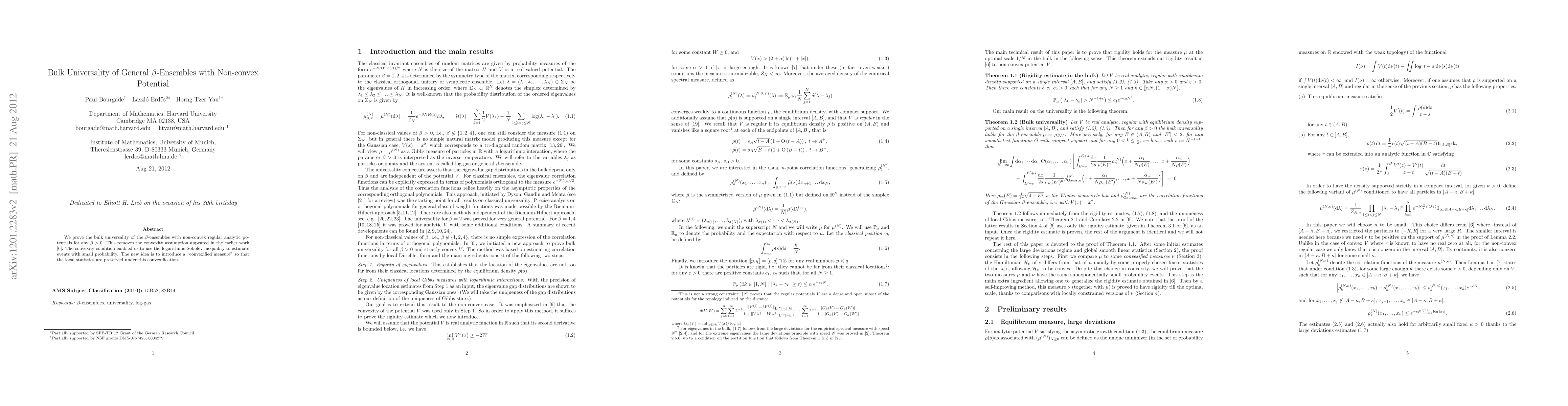 This paper demonstrates the bulk universality of $\beta$-ensembles with non-convex potentials, eliminating the previous convexity assumption. The authors introduce a "convexified measure" to maintain local statistics, allowing for the estimation of events with small probability without the convexity condition.
