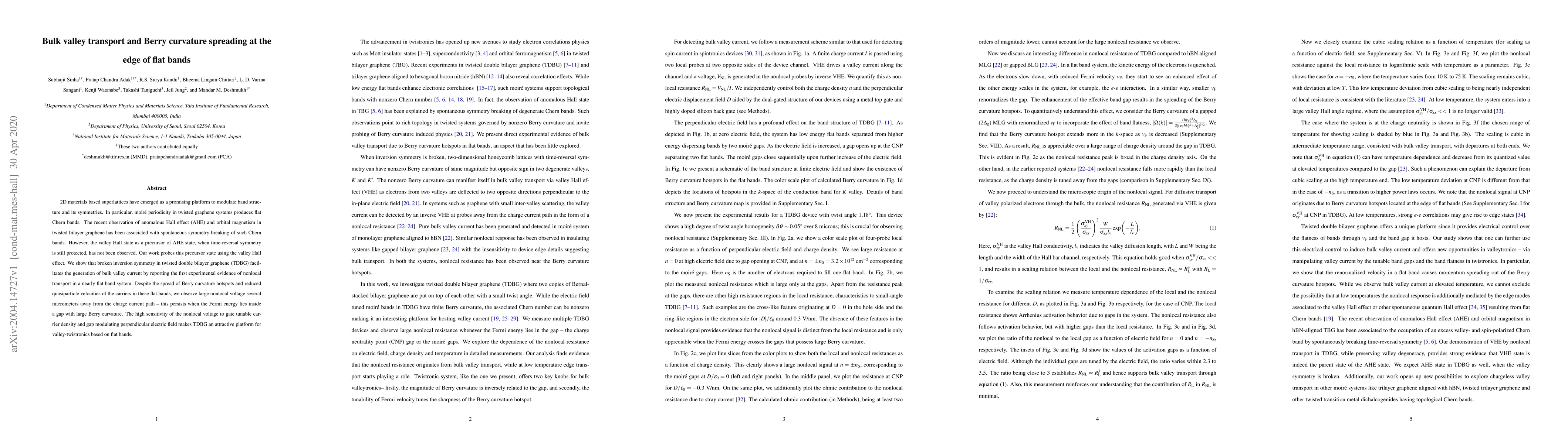 This paper investigates the valley Hall effect in twisted double bilayer graphene (TDBG), showing the first experimental evidence of nonlocal transport in nearly flat Chern bands. Despite the spread of Berry curvature and reduced carrier velocities, a significant nonlocal voltage is observed, indicating a promising platform for valley-twistronics.