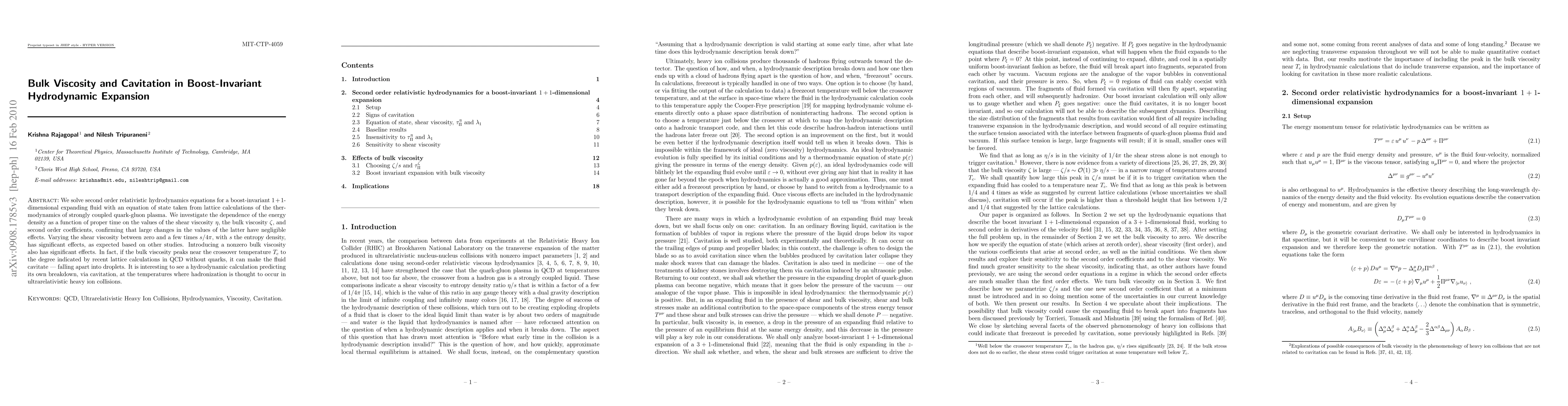 Researchers used relativistic hydrodynamics to study a boost-invariant fluid expanding in heavy ion collisions, finding that varying shear viscosity affects energy density significantly, while bulk viscosity can cause the fluid to 'cavitate' or break apart.