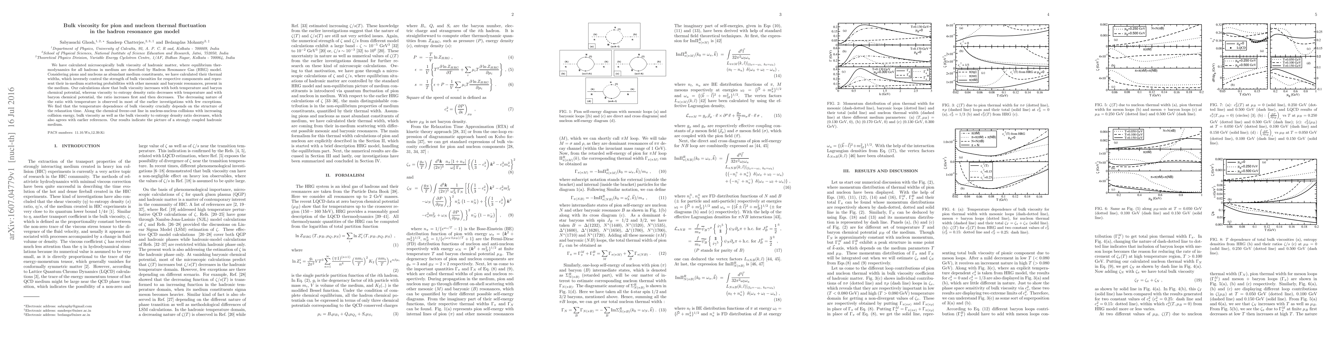 We have calculated microscopically bulk viscosity of hadronic matter, where equilibrium thermodynamics for all hadrons in medium are described by Hadron Resonance Gas (HRG) model. Considering pions and nucleons as abundant medium constituents, we have calculated their thermal widths, which inversely control the strength of bulk viscosities for respective components and represent their in-medium scattering probabilities with other mesonic and baryonic resonances, present in the medium. Our calculations show that bulk viscosity increases with both temperature and baryon chemical potential, whereas viscosity to entropy density ratio decreases with temperature and with baryon chemical potential, the ratio increases first and then decreases. The decreasing nature of the ratio with temperature is observed in most of the earlier investigations with few exceptions. We find that the temperature dependence of bulk viscosity crucially depends on the structure of the relaxation time. Along the chemical freeze-out line in nucleus-nucleus collisions with increasing collision energy, bulk viscosity as well as the bulk viscosity to entropy density ratio decreases, which also agrees with earlier references. Our results indicate the picture of a strongly coupled hadronic medium.