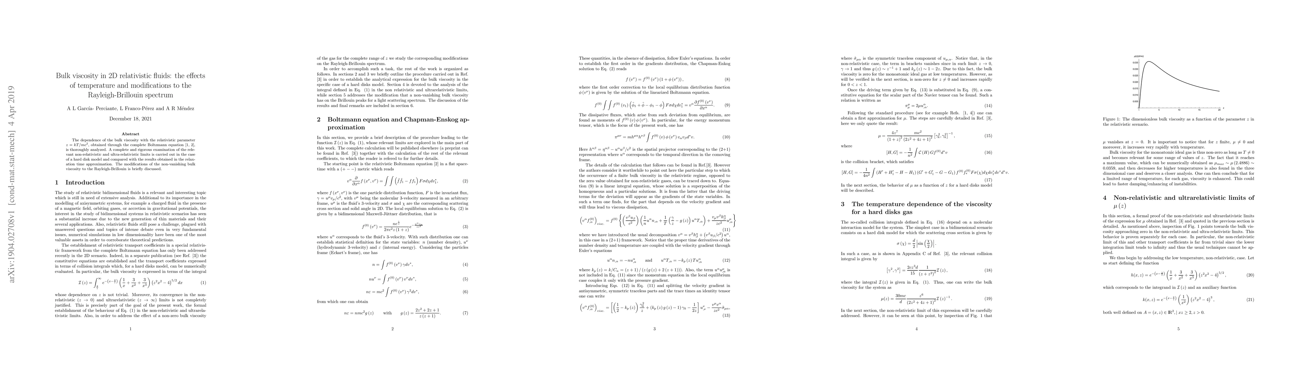 Researchers analyzed the relationship between temperature and bulk viscosity in 2D relativistic fluids, finding a significant impact of the temperature parameter on viscosity. They also compared their results with those from other methods to provide a more comprehensive understanding of bulk viscosity.