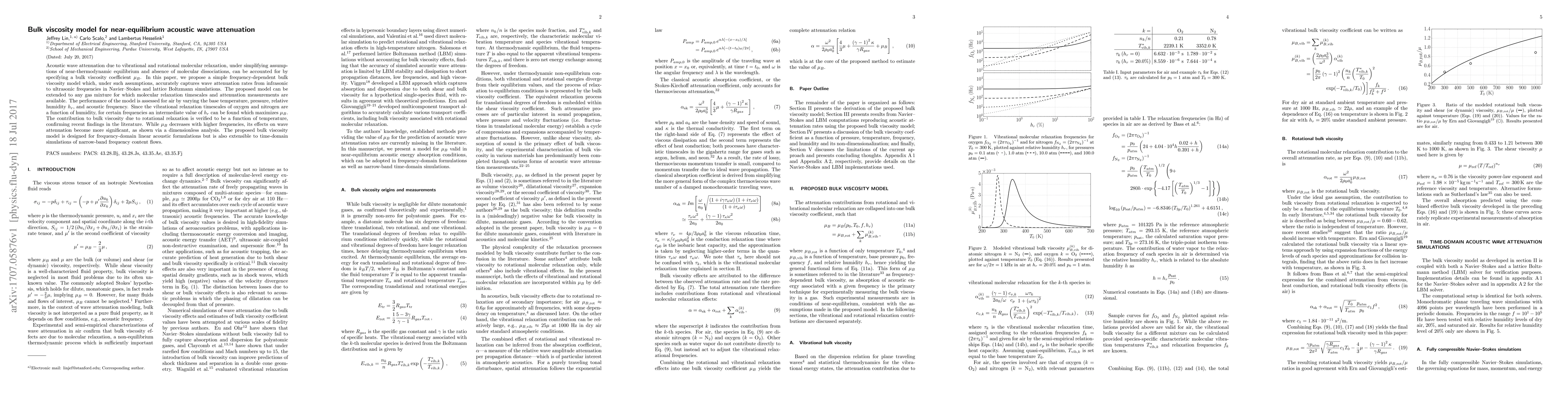This paper proposes a frequency-dependent bulk viscosity model to accurately capture acoustic wave attenuation in gases under near-equilibrium conditions, validated through simulations across various frequencies and environmental conditions. The model's effectiveness is demonstrated for air, considering factors like temperature, pressure, humidity, and frequency.