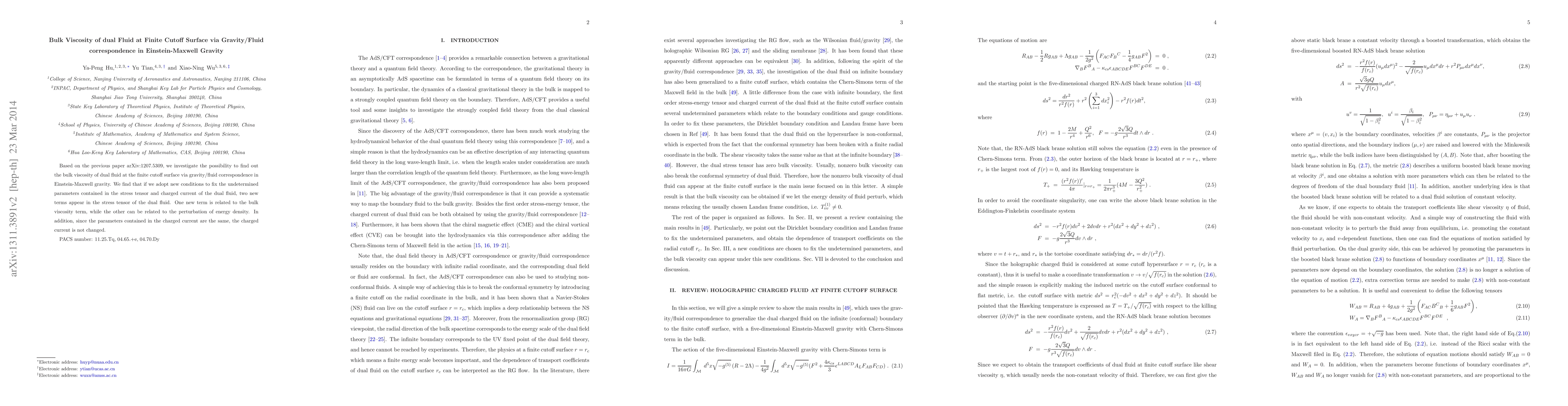 Based on the previous paper arXiv:1207.5309, we investigate the possibility to find out the bulk viscosity of dual fluid at the finite cutoff surface via gravity/fluid correspondence in Einstein-Maxwell gravity. We find that if we adopt new conditions to fix the undetermined parameters contained in the stress tensor and charged current of the dual fluid, two new terms appear in the stress tensor of the dual fluid. One new term is related to the bulk viscosity term, while the other can be related to the perturbation of energy density. In addition, since the parameters contained in the charged current are the same, the charged current is not changed.