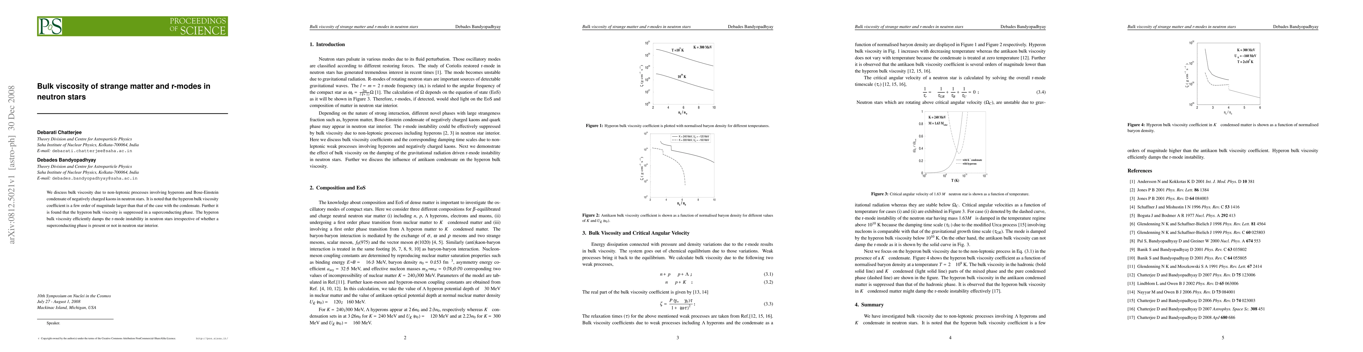 This paper investigates the bulk viscosity of strange matter in neutron stars, focusing on hyperons and kaon condensates. It reveals that hyperon-induced bulk viscosity significantly dampens r-mode instabilities, even in superconducting phases, making it a crucial factor in neutron star dynamics.