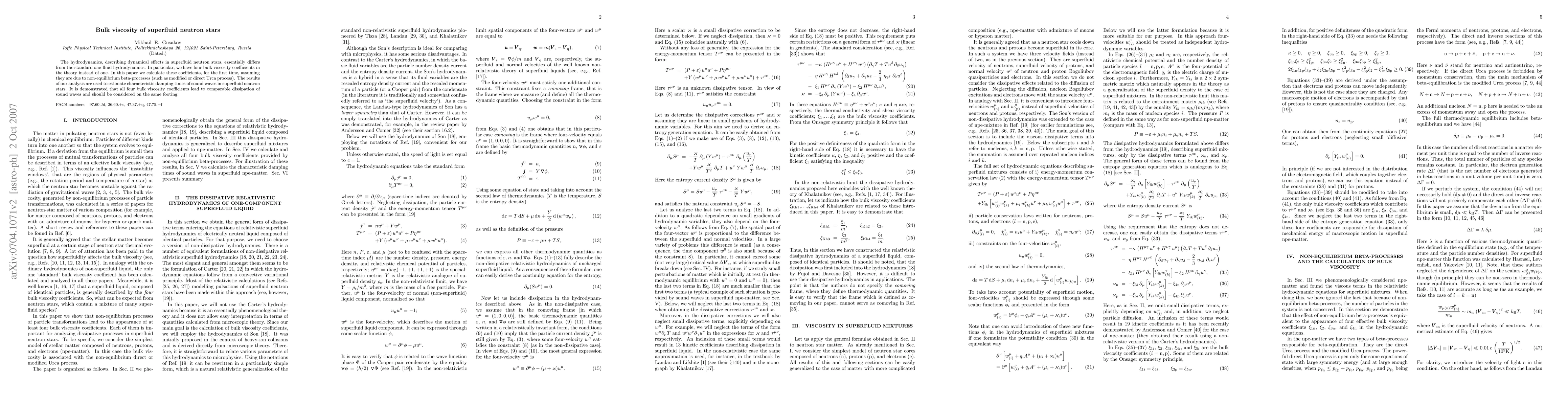 This paper calculates four bulk viscosity coefficients in superfluid neutron stars, attributing them to non-equilibrium beta-processes. The analysis estimates the damping times of sound waves, showing that all coefficients contribute comparably to dissipation.