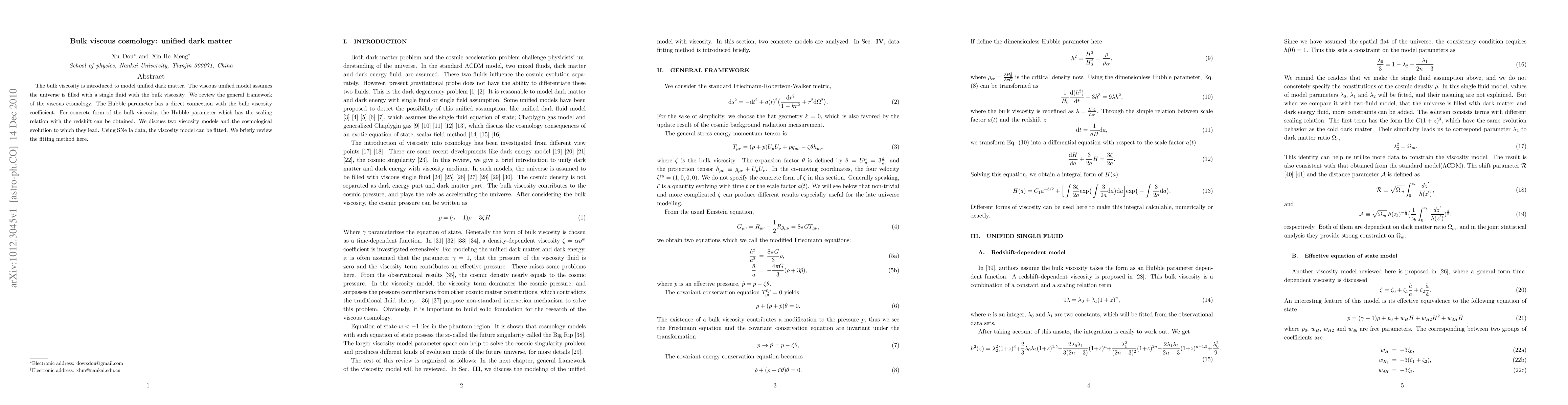 This paper introduces bulk viscosity to model unified dark matter, proposing a single fluid with bulk viscosity to describe the universe's evolution. It reviews the framework of viscous cosmology and discusses two viscosity models, fitting one to SNe Ia data to explore the cosmological implications.