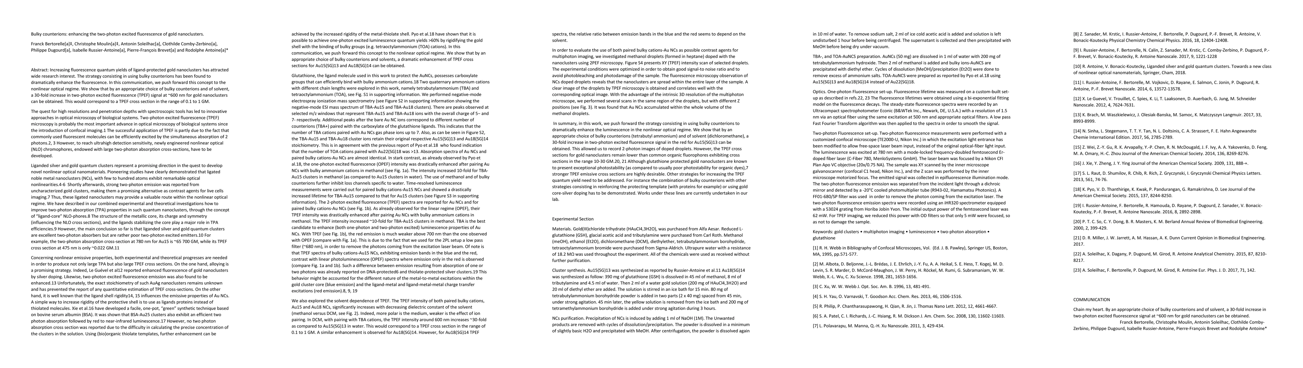 This research demonstrates that using bulky counterions significantly enhances the two-photon excited fluorescence of gold nanoclusters, achieving a 30-fold increase in TPEF signal at ~600 nm, corresponding to a TPEF cross section of 0.1 to 1 GM. This strategy opens new avenues for improving nonlinear optical properties of nanoclusters.