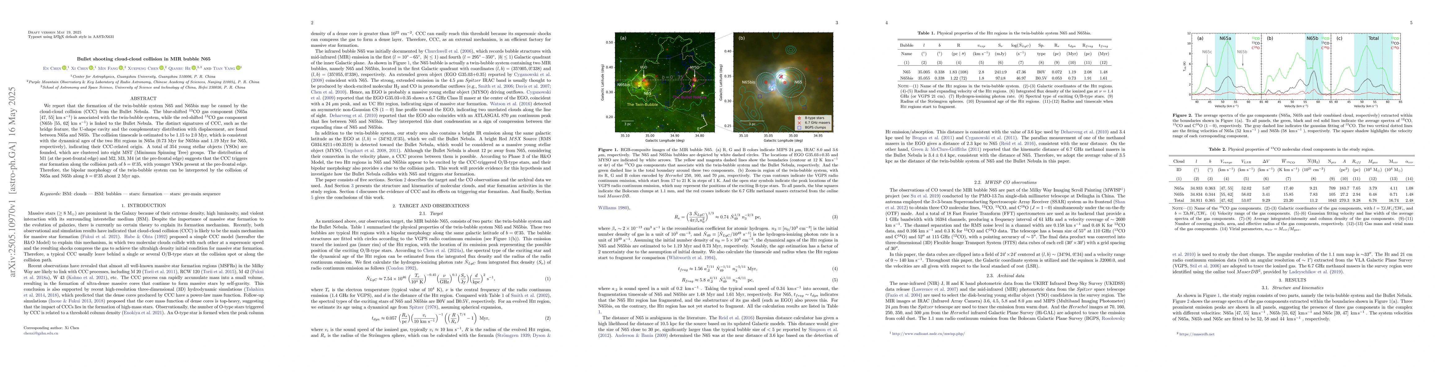 Researchers suggest that a cloud-cloud collision from the Bullet Nebula may have formed the twin-bubble system N65, with evidence including blue-shifted gas and distinct signatures of collision.
