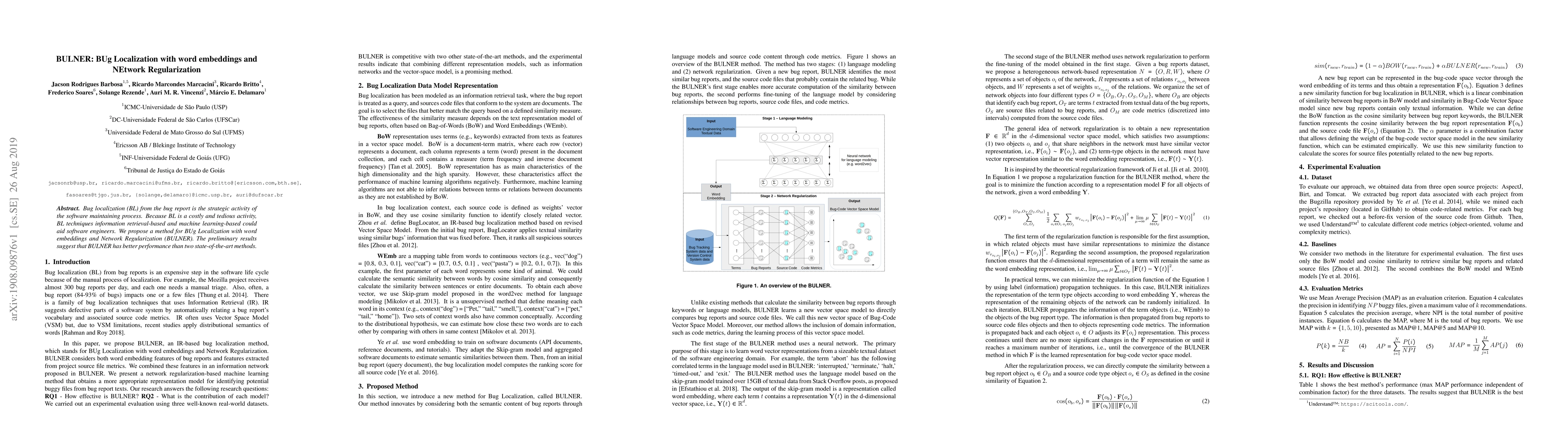 The BULNER method uses word embeddings and network regularization to improve bug localization from bug reports, showing better performance than existing state-of-the-art techniques. Preliminary results indicate its effectiveness in reducing the cost and effort of this crucial software maintenance activity.