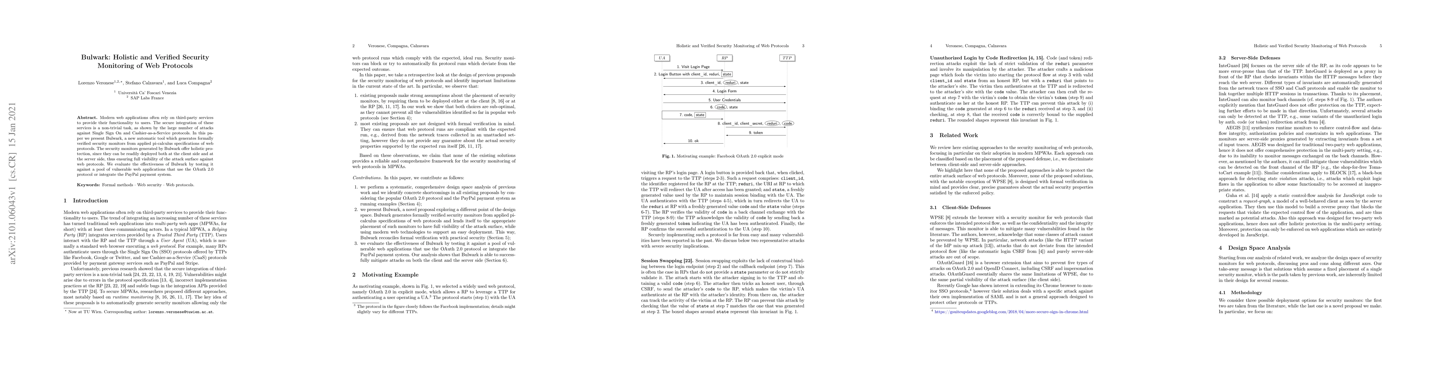 Bulwark combines ProVerif, a state-of-the-art protocol verification tool, with service workers to provide a holistic, formally verified security monitoring solution for web protocols.