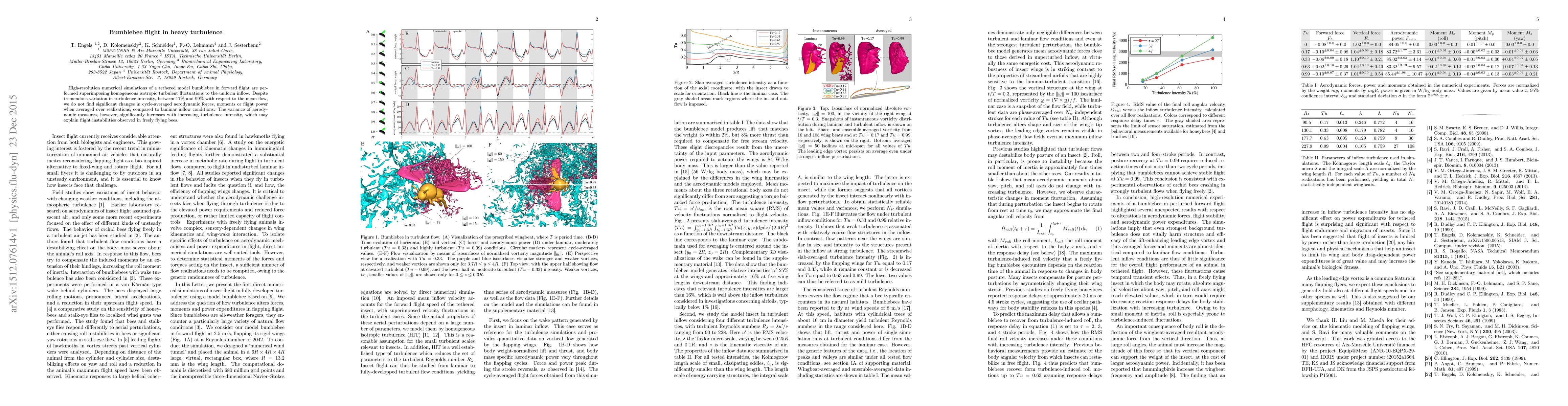 This study uses high-resolution simulations to examine bumblebee flight in turbulent conditions, finding that while turbulence intensity varies greatly, average aerodynamic forces remain stable. However, increased turbulence significantly raises the variance in these forces, potentially explaining observed flight instabilities in free-flying bees.