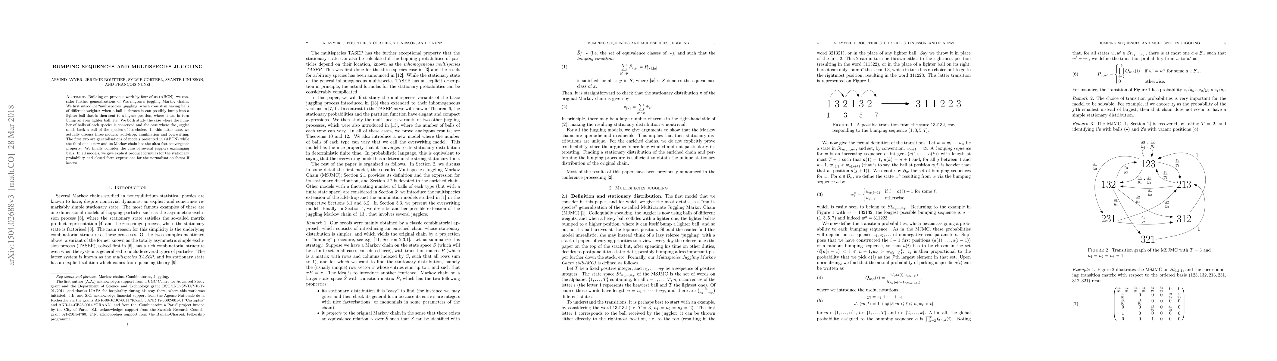 Building on previous work by four of us (ABCN), we consider further generalizations of Warrington's juggling Markov chains. We first introduce "multispecies" juggling, which consist in having balls of different weights: when a ball is thrown it can possibly bump into a lighter ball that is then sent to a higher position, where it can in turn bump an even lighter ball, etc. We both study the case where the number of balls of each species is conserved and the case where the juggler sends back a ball of the species of its choice. In this latter case, we actually discuss three models: add-drop, annihilation and overwriting. The first two are generalisations of models presented in (ABCN) while the third one is new and its Markov chain has the ultra fast convergence property. We finally consider the case of several jugglers exchanging balls. In all models, we give explicit product formulas for the stationary probability and closed form expressions for the normalisation factor if known.