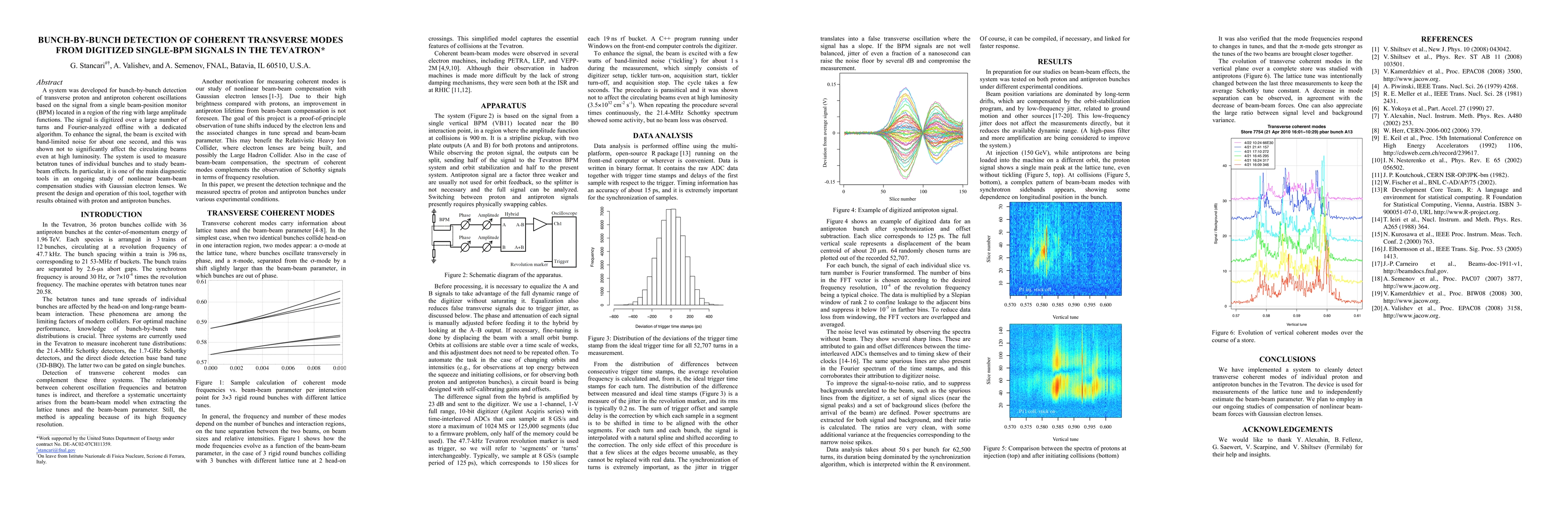 This paper describes a system for detecting coherent transverse modes in proton and antiproton bunches in the Tevatron using digitized single-beam-position monitor signals. The method involves exciting the beam with band-limited noise and analyzing the resulting signal to measure betatron tunes and study beam-beam effects, including nonlinear beam-beam compensation.