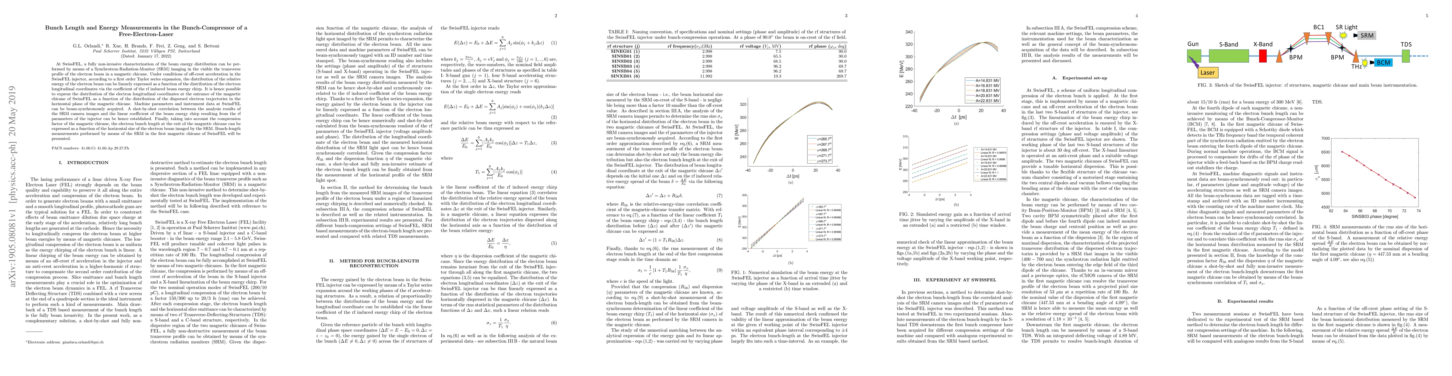 The paper presents a method for shot-by-shot, non-invasive measurement of electron bunch length using SRM imaging in magnetic chicanes, based on a mathematical model approximating the beam energy chirp.