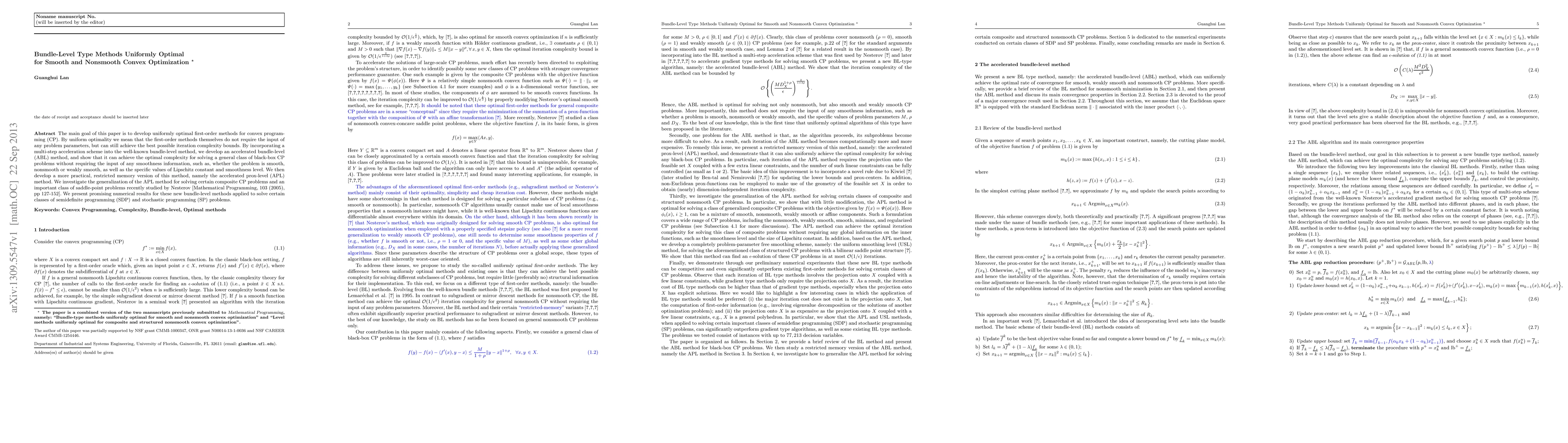 The main goal of this paper is to develop uniformly optimal first-order methods for convex programming (CP). By uniform optimality we mean that the first-order methods themselves do not require the input of any problem parameters, but can still achieve the best possible iteration complexity bounds. By incorporating a multi-step acceleration scheme into the well-known bundle-level method, we develop an accelerated bundle-level (ABL) method, and show that it can achieve the optimal complexity for solving a general class of black-box CP problems without requiring the input of any smoothness information, such as, whether the problem is smooth, nonsmooth or weakly smooth, as well as the specific values of Lipschitz constant and smoothness level. We then develop a more practical, restricted memory version of this method, namely the accelerated prox-level (APL) method. We investigate the generalization of the APL method for solving certain composite CP problems and an important class of saddle-point problems recently studied by Nesterov [Mathematical Programming, 103 (2005), pp 127-152]. We present promising numerical results for these new bundle-level methods applied to solve certain classes of semidefinite programming (SDP) and stochastic programming (SP) problems.