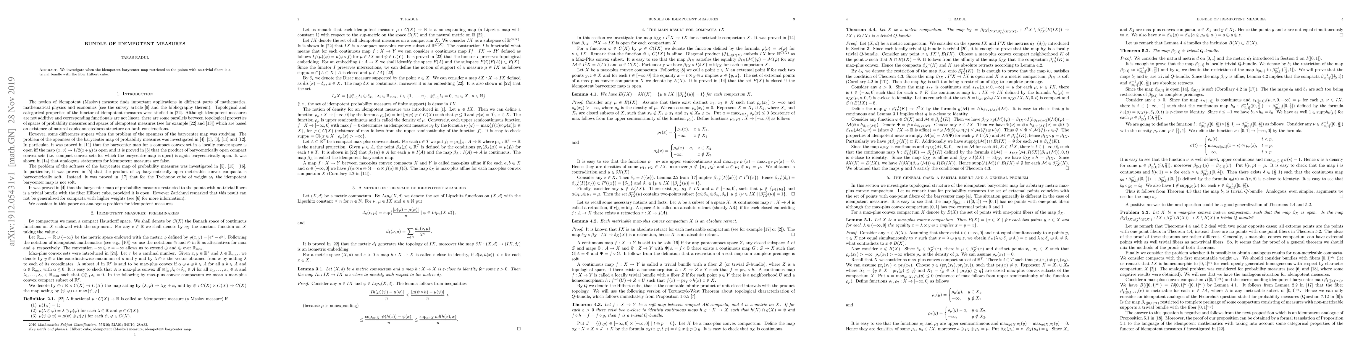 We investigate when the idempotent barycenter map restricted to the points with no-trivial fibers is a trivial bundle with the fiber Hilbert cube.