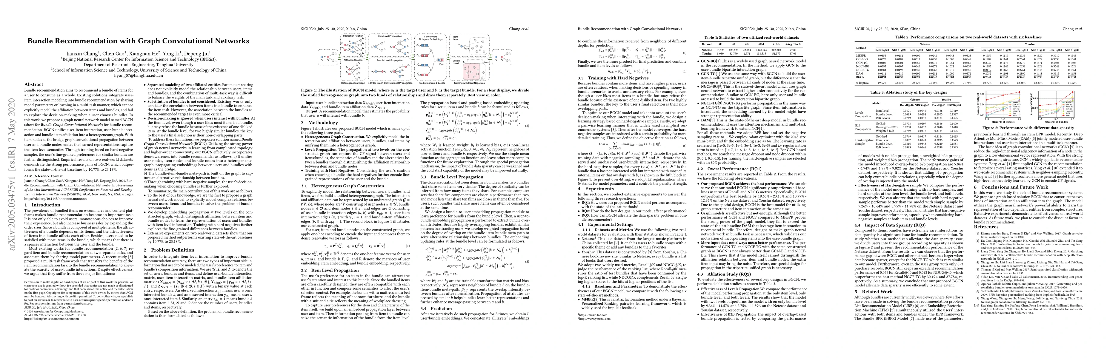 This paper proposes BGCN, a graph convolutional network for bundle recommendation that models user-item, user-bundle, and bundle-item interactions in a heterogeneous graph. BGCN captures item-level semantics and distinguishes user preferences for bundles, achieving superior performance over state-of-the-art baselines.