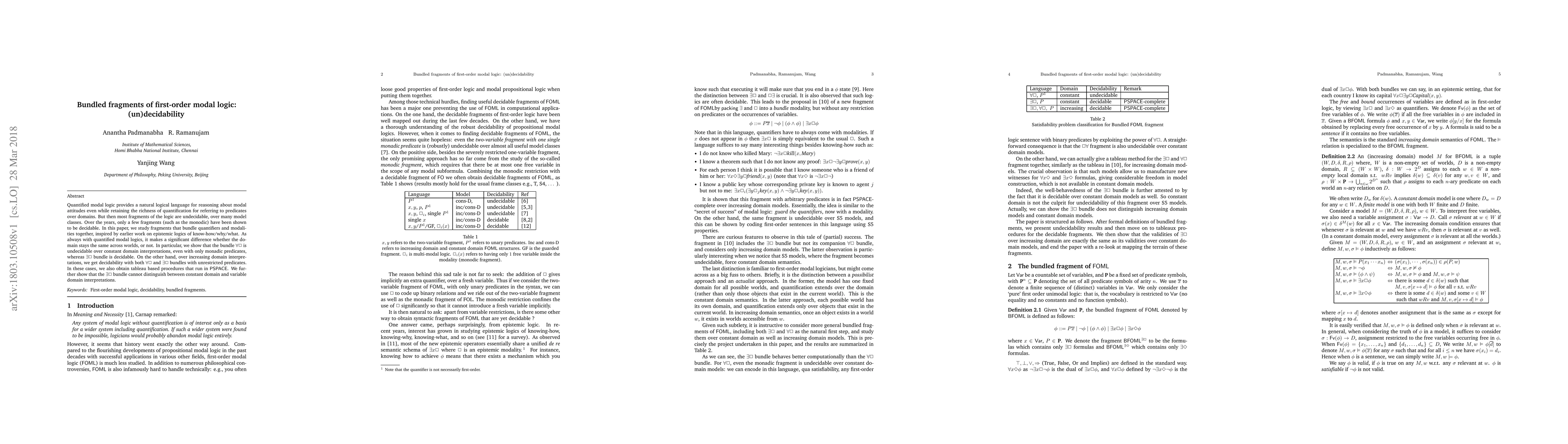 This paper explores decidability in bundled fragments of first-order modal logic, demonstrating that $\forall \Box$ is undecidable over constant domains while $\exists \Box$ is decidable. Over increasing domain interpretations, both bundles are decidable with \PSPACE procedures.