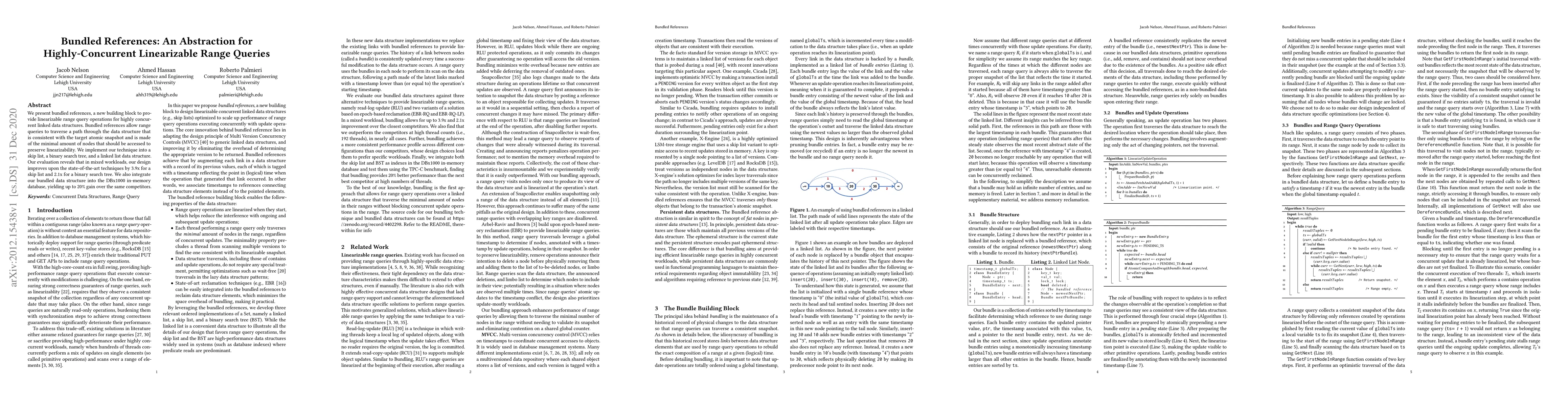 This paper introduces bundled references to enable linearizable range queries in highly concurrent linked data structures, achieving significant performance improvements over existing techniques. The implementation in skip lists, binary search trees, and linked lists shows up to 3.9x and 2.1x gains respectively, and integration into the DBx1000 database yields up to 20% better performance.