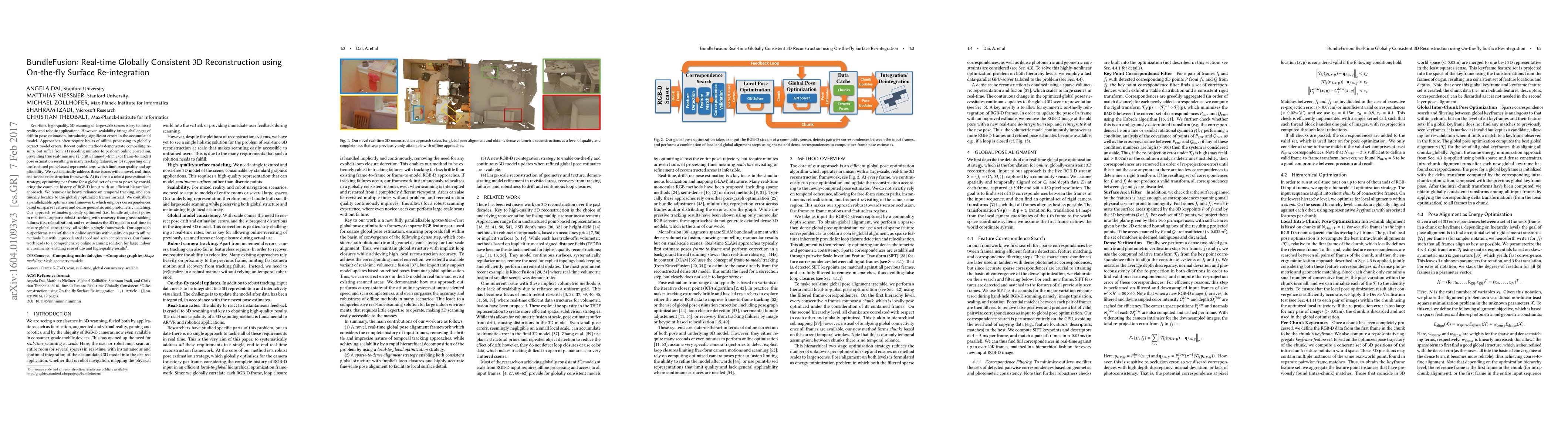 Real-time, high-quality, 3D scanning of large-scale scenes is key to mixed reality and robotic applications. However, scalability brings challenges of drift in pose estimation, introducing significant errors in the accumulated model. Approaches often require hours of offline processing to globally correct model errors. Recent online methods demonstrate compelling results, but suffer from: (1) needing minutes to perform online correction preventing true real-time use; (2) brittle frame-to-frame (or frame-to-model) pose estimation resulting in many tracking failures; or (3) supporting only unstructured point-based representations, which limit scan quality and applicability. We systematically address these issues with a novel, real-time, end-to-end reconstruction framework. At its core is a robust pose estimation strategy, optimizing per frame for a global set of camera poses by considering the complete history of RGB-D input with an efficient hierarchical approach. We remove the heavy reliance on temporal tracking, and continually localize to the globally optimized frames instead. We contribute a parallelizable optimization framework, which employs correspondences based on sparse features and dense geometric and photometric matching. Our approach estimates globally optimized (i.e., bundle adjusted) poses in real-time, supports robust tracking with recovery from gross tracking failures (i.e., relocalization), and re-estimates the 3D model in real-time to ensure global consistency; all within a single framework. Our approach outperforms state-of-the-art online systems with quality on par to offline methods, but with unprecedented speed and scan completeness. Our framework leads to a comprehensive online scanning solution for large indoor environments, enabling ease of use and high-quality results.