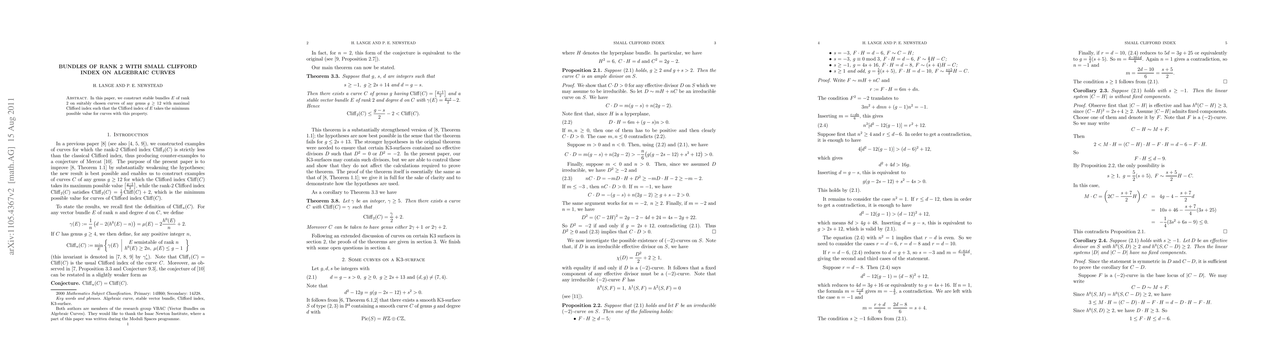 This paper constructs stable rank 2 bundles on algebraic curves of genus $\ge13$ with a significantly reduced Clifford index, eliminating a technical hypothesis from prior work. This advancement broadens the applicability of the construction method.