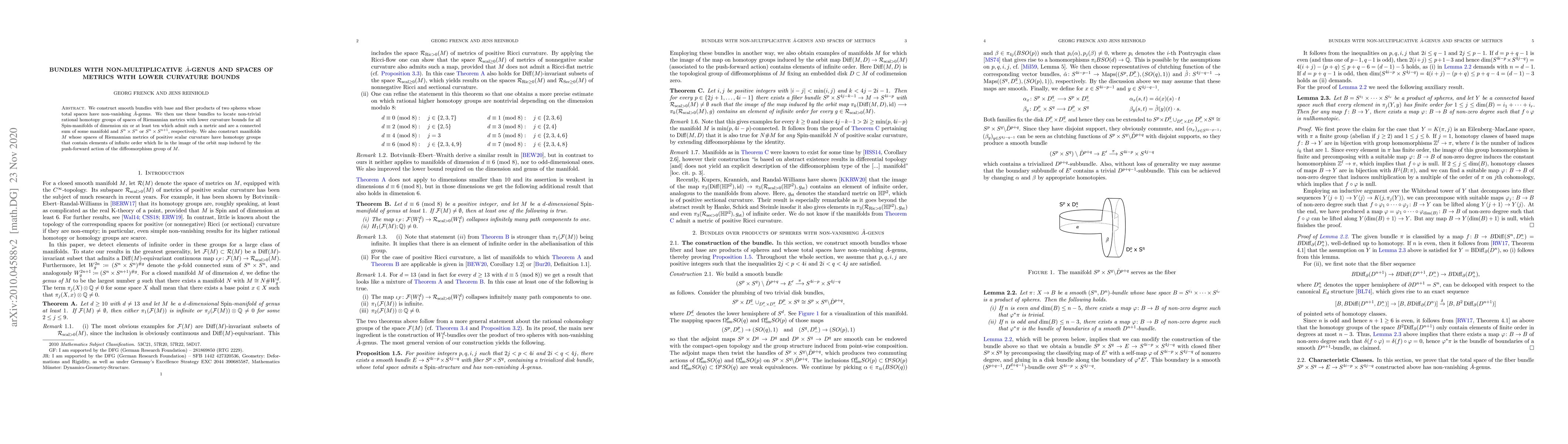 We construct smooth bundles with base and fiber products of two spheres whose total spaces have non-vanishing $\hat{A}$-genus. We then use these bundles to locate non-trivial rational homotopy groups of spaces of Riemannian metrics with lower curvature bounds for all Spin-manifolds of dimension six or at least ten which admit such a metric and are a connected sum of some manifold and $S^n \times S^n$ or $S^n \times S^{n+1}$, respectively. We also construct manifolds $M$ whose spaces of Riemannian metrics of positive scalar curvature have homotopy groups that contain elements of infinite order which lie in the image of the orbit map induced by the push-forward action of the diffeomorphism group of $M$.