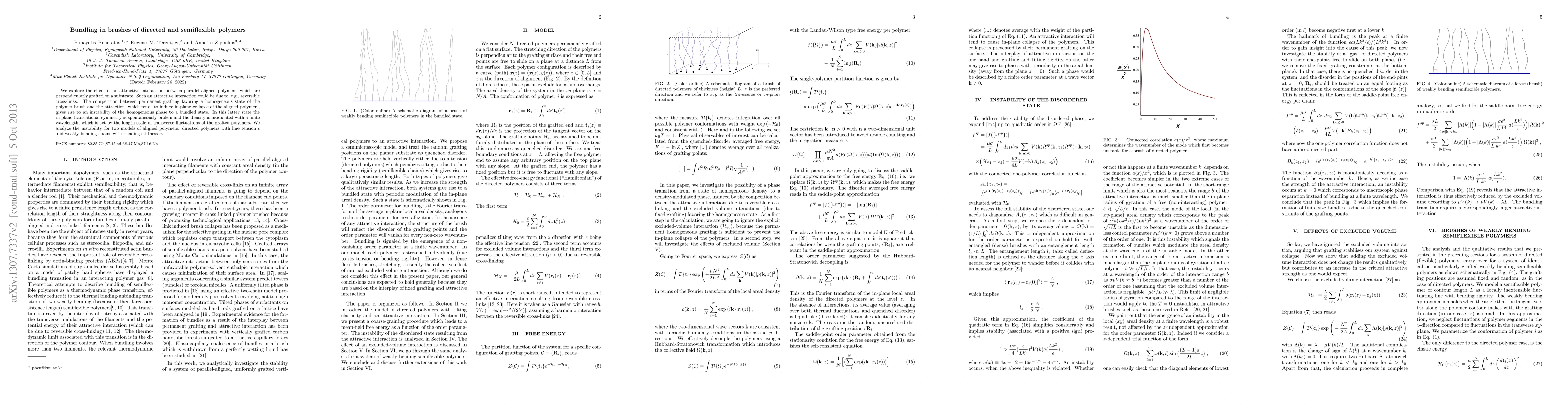 This paper investigates how attractive interactions between parallel-aligned polymers grafted on a substrate can lead to bundling, driven by the competition between permanent grafting and attractive forces. The study analyzes the resulting instability and density modulation in two polymer models: directed polymers with line tension and weakly bending chains with bending stiffness.