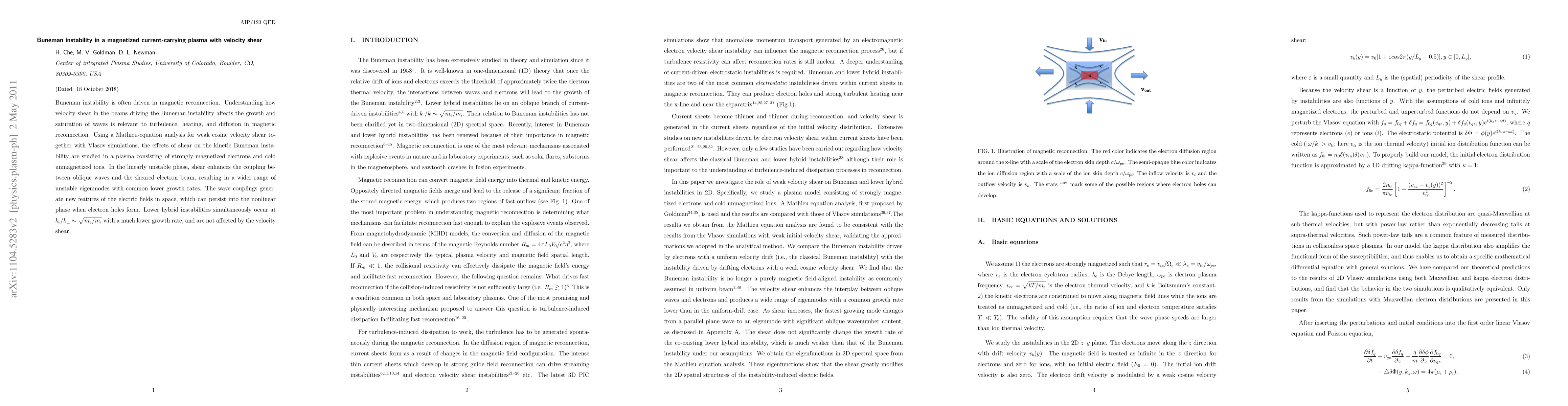 This paper investigates the Buneman instability in magnetized plasma with velocity shear, finding that shear enhances coupling between oblique waves and the electron beam, broadening the range of unstable modes with reduced growth rates. Lower hybrid instabilities occur concurrently but are unaffected by shear.