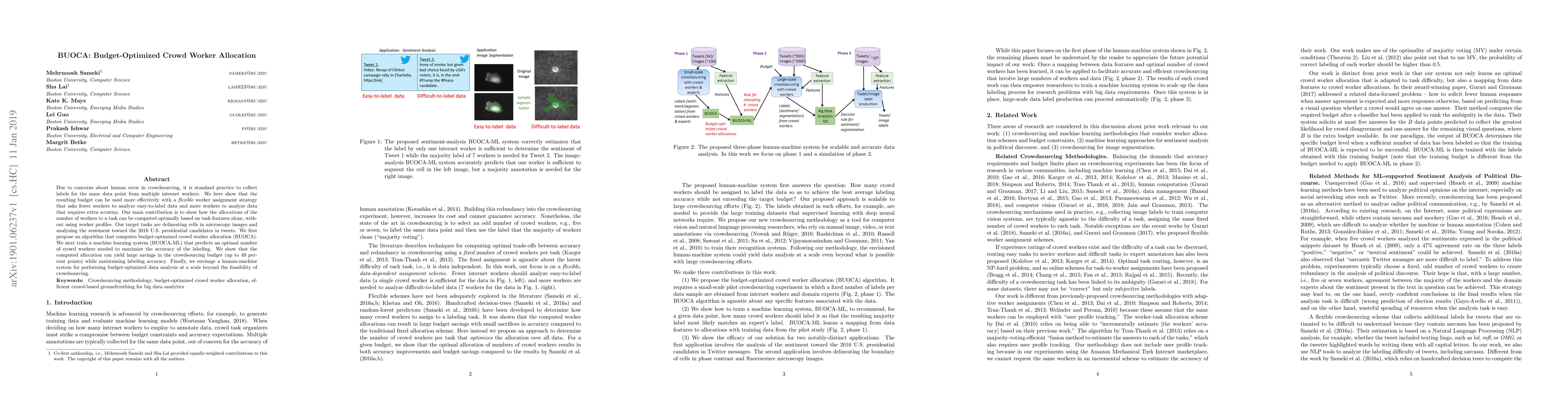 The paper presents BUOCA, a greedy algorithm for optimal worker allocation, and BUOCA-ML, a machine learning system that predicts optimal allocations based on task features, enabling more efficient crowdsourcing.