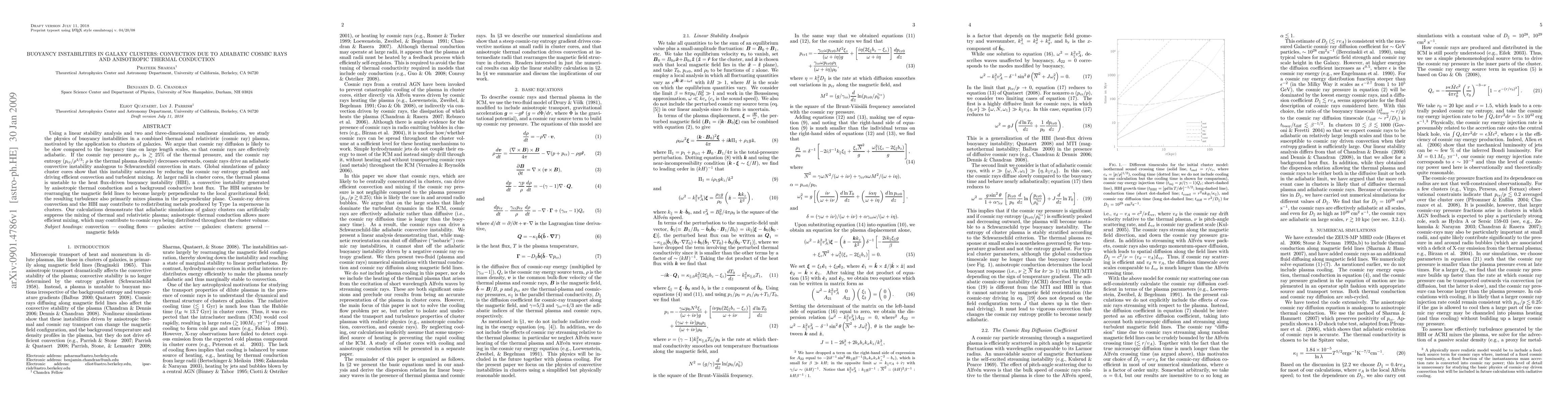 This paper investigates buoyancy instabilities in galaxy clusters driven by adiabatic cosmic rays and anisotropic thermal conduction. It finds that cosmic rays can induce convective instability when their pressure is significant, leading to efficient mixing and turbulence in cluster cores.