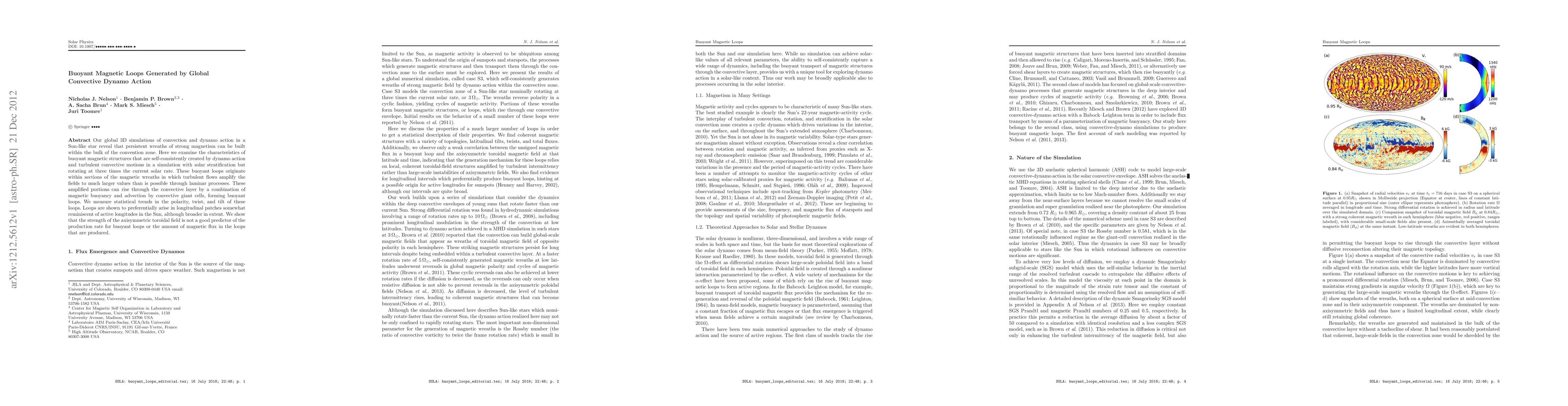This work is novel in its global convective-dynamo simulation approach, demonstrating the formation of buoyant magnetic loops and highlighting the significant role of turbulent convection in their creation and transport.