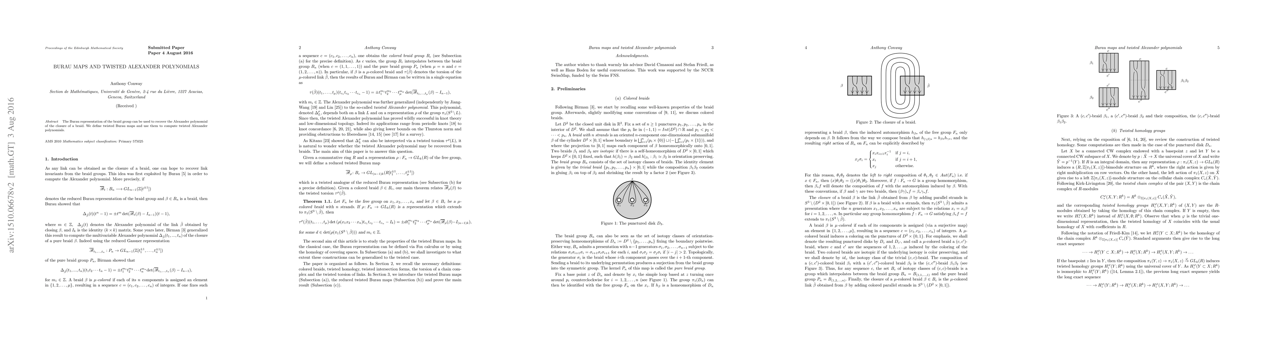 Summary: The paper explores the use of Burau maps in computing Alexander polynomials for braid closures and introduces twisted Burau maps to calculate twisted Alexander polynomials.