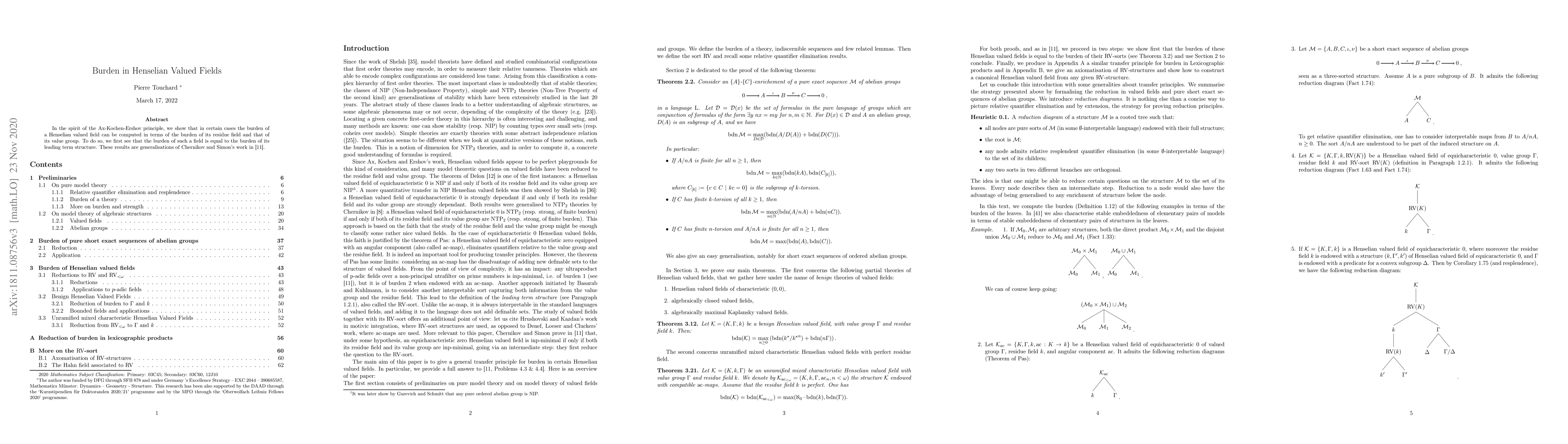 In the spirit of the Ax-Kochen-Ershov principle, we show that in certain cases the burden of a Henselian valued field can be computed in terms of the burden of its residue field and that of its value group. To do so, we first see that the burden of such a field is equal to the burden of its RV-sort. These results are generalisations of a work of Chernikov and Simon.