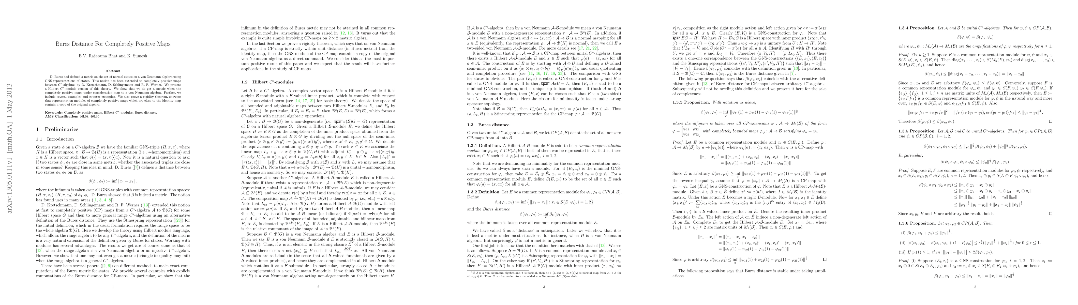 D. Bures had defined a metric on the set of normal states on a von Neumann algebra using GNS representations of states. This notion has been extended to completely positive maps between $C^*$-algebras by D. Kretschmann, D. Schlingemann and R. F. Werner. We present a Hilbert $C^*$-module version of this theory. We show that we do get a metric when the completely positive maps under consideration map to a von Neumann algebra. Further, we include several examples and counter examples. We also prove a rigidity theorem, showing that representation modules of completely positive maps which are close to the identity map contain a copy of the original algebra.
