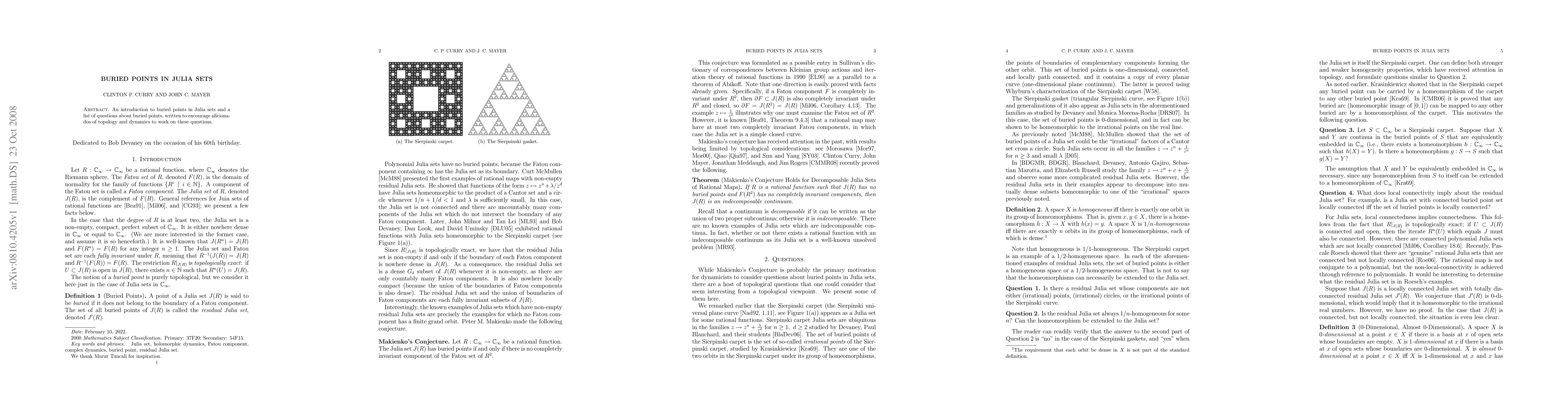 This paper introduces the concept of buried points in Julia sets and presents a series of questions aimed at inspiring research in the intersection of topology and dynamics. It seeks to stimulate interest and contributions from experts in these fields.