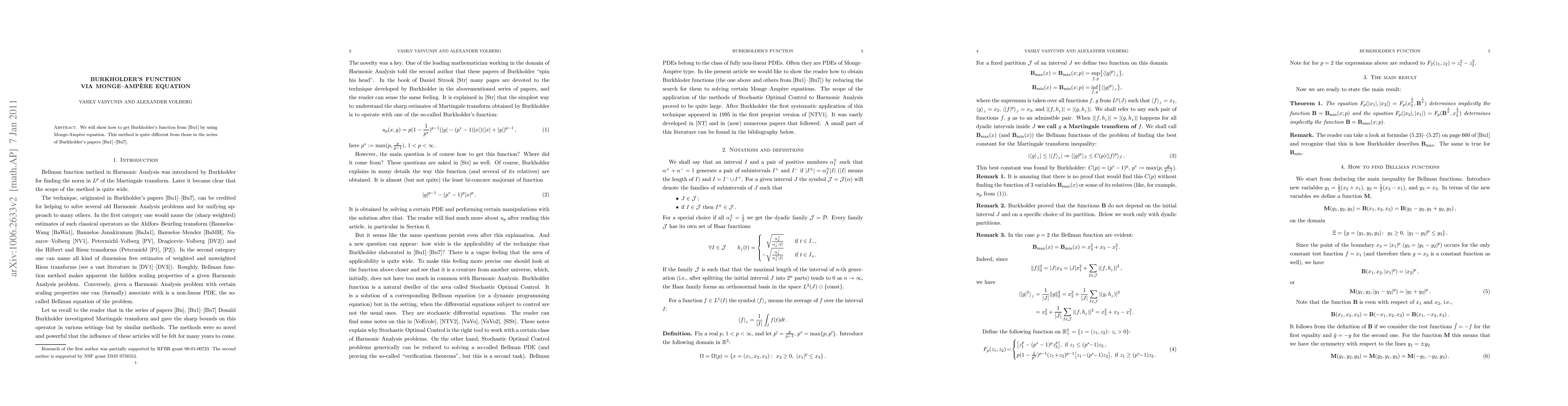 Researchers develop a new method to derive Burkholder's function using Monge-Ampere equation, offering an alternative approach distinct from existing methods.