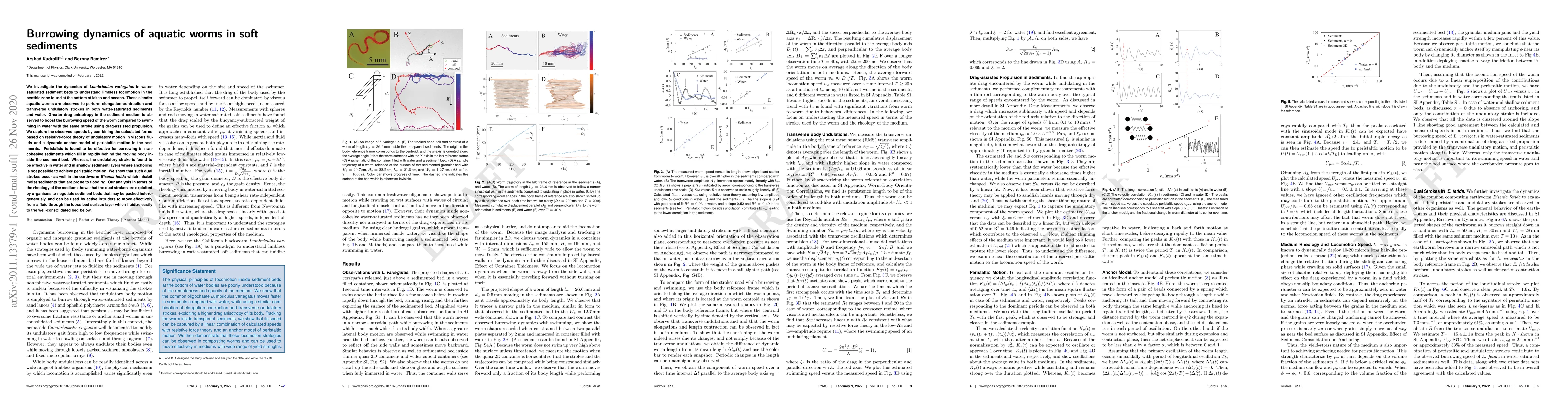 We investigate the dynamics of \textbf{\textit{Lumbriculus variegatus}} in water-saturated sediment beds to understand limbless locomotion in the benthic zone found at the bottom of lakes and oceans. These slender aquatic worms are observed to perform elongation-contraction and transverse undulatory strokes in both water-saturated sediments and water. Greater drag anisotropy in the sediment medium is observed to boost the burrowing speed of the worm compared to swimming in water with the same stroke using drag-assisted propulsion. We capture the observed speeds by combining the calculated forms based on resistive-force theory of undulatory motion in viscous fluids and a dynamic anchor model of peristaltic motion in the sediments. Peristalsis is found to be effective for burrowing in non-cohesive sediments which fill in rapidly behind the moving body inside the sediment bed. Whereas, the undulatory stroke is found to be effective in water and in shallow sediment layers where anchoring is not possible to achieve peristaltic motion. We show that such dual strokes occur as well in the earthworm \textbf{\textit{Eisenia fetida}} which inhabit moist sediments that are prone to flooding. Our analysis in terms of the rheology of the medium shows that the dual strokes are exploited by organisms to negotiate sediment beds that may be packed heterogeneously, and can be used by active intruders to move effectively from a fluid through the loose bed surface layer which fluidize easily to the well-consolidated bed below.