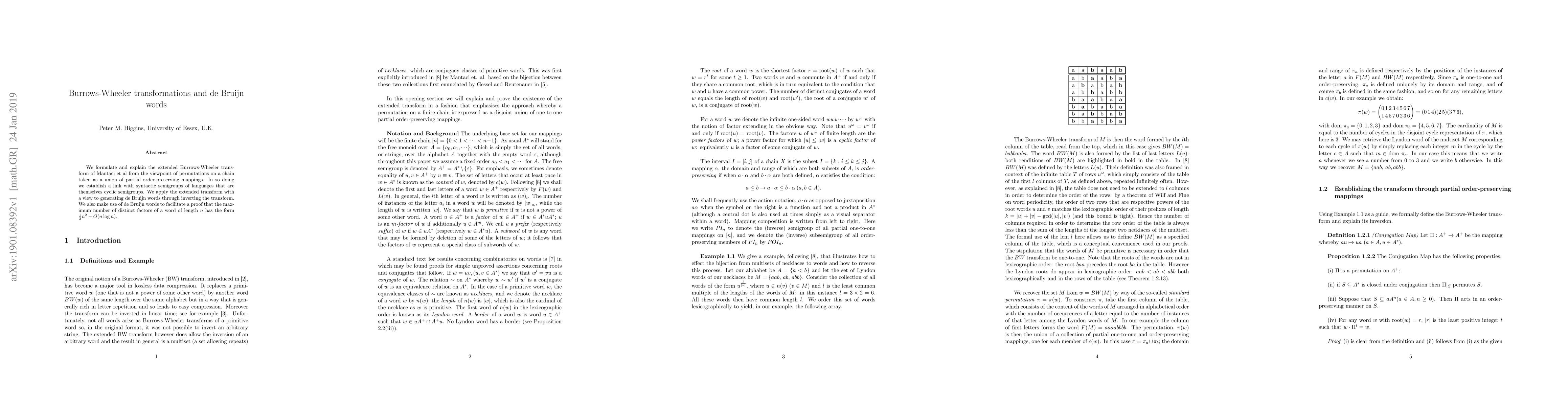 The paper connects the extended Burrows-Wheeler transform with permutations on chains and links it to cyclic semigroups of languages. It applies the transform to generate de Bruijn words by inverting the process.