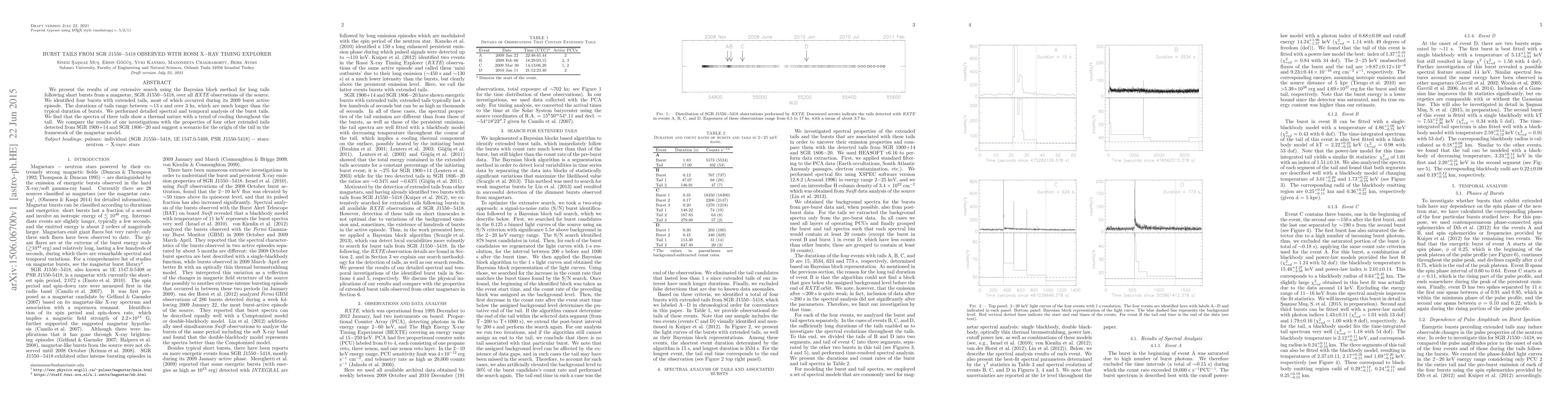 We present the results of our extensive search using the Bayesian block method for long tails following short bursts from a magnetar, SGR J1550-5418, over all RXTE observations of the source. We identified four bursts with extended tails, most of which occurred during its 2009 burst active episode. The durations of tails range between ~13 s and over 3 ks, which are much longer than the typical duration of bursts. We performed detailed spectral and temporal analysis of the burst tails. We find that the spectra of three tails show a thermal nature with a trend of cooling throughout the tail. We compare the results of our investigations with the properties of four other extended tails detected from SGR 1900+14 and SGR 1806-20 and suggest a scenario for the origin of the tail in the framework of the magnetar model.